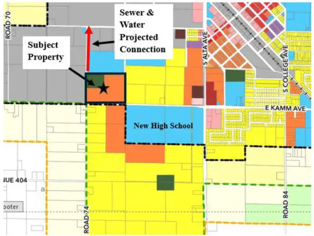 The 30 acres on the Northeast corner of Kamm and Road 74 in City Limits of Dinuba has been currently rezoned to ‘RM-2’ (Multi-Family Residential) and ‘RCO’ (Resource Conservation)(Roughly 28 buildable acres of units and 1 to 2 acres for a community park. The RM-2 zoning designation is intended for the development of multi-family residential units at a density of one dwelling per 2,000 square feet of lot area. An acre would be able to accommodate up to approximately 22 units (likely closer to 15 units, once things like setbacks and parking are designed and approved). Sewer and water must be connected to the North down Road 74 to Sierra. Buyer to verify their potential project with city engineer and planner. Seller would consider subdividing 10 acre portions of the parcel. The parcel is currently planted 4.5 acres Tango Mandarins, 6 acres Zee Fire Nectarines, 3 acres Honey Lite Nectarines, 2 acres Candy Pearl (White Flesch) Nectarines, 5 acres August Bright Nectarines, 6 acres Summer Flame Peach (Planted 2023/ First Leaf). One agricultural pump on the property (10 horsepower/submersible) and the parcel receives Alta Irrigation District surface water. Irrigation can be ran through the flood or fan jet systems to irrigate the ranch. There is an updated 2,500 square foot home on the property that consists of 4 bedrooms and 2 bathrooms, which was built originally in 1934.