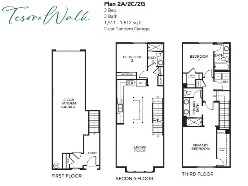 Upstairs, the third level offers a thoughtfully designed layout with a convenient laundry room, a luxurious primary suite complete with a walk-in closet, and a secondary bedroom featuring its own private en-suite bath and walk-in closet.