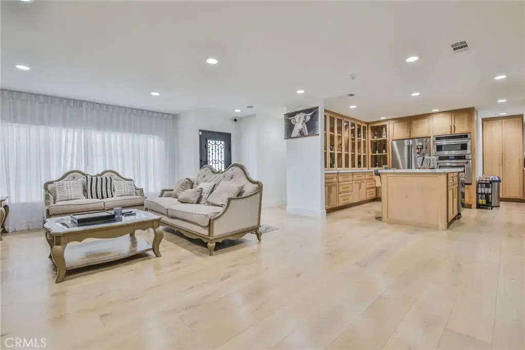 Welcome to the most prestigious and desirable area of Northeast Downey. This tastefully updated residence offers 4 bedrooms, 3 bathrooms, with a permitted newer room addition of 132 sq. ft. ideal for a home office or gym. The home features approximately 2,437 sq. ft. of living space on a spacious 10,414 sq. ft. lot. The designer kitchen is a true masterpiece featuring custom white oak cabinetry, quartz countertops and backsplash, a central island, stainless-steel ZLINE appliances, including refrigerator, stove, double oven, and dishwasher. Throughout the entire house, the enchanting beauty of White oak hardwood flooring adds a touch of luxury to every room. The laundry room featuring matching custom white oak cabinetry. The primary suite includes a custom white oak walk-in closet, a bathroom with dual vanities, marble shower and flooring. Additional features include automatic driveway gate with glass doors, two car garage with modern glass door, wrought iron front door, custom wood bar, central air and heating, recessed lighting, paved driveway along with many other luxury features. The backyard is designed for both relaxation and entertaining, featuring a pool, Jacuzzi, and a Newly permitted Detached Patio cover with sink total sq. ft. 255.