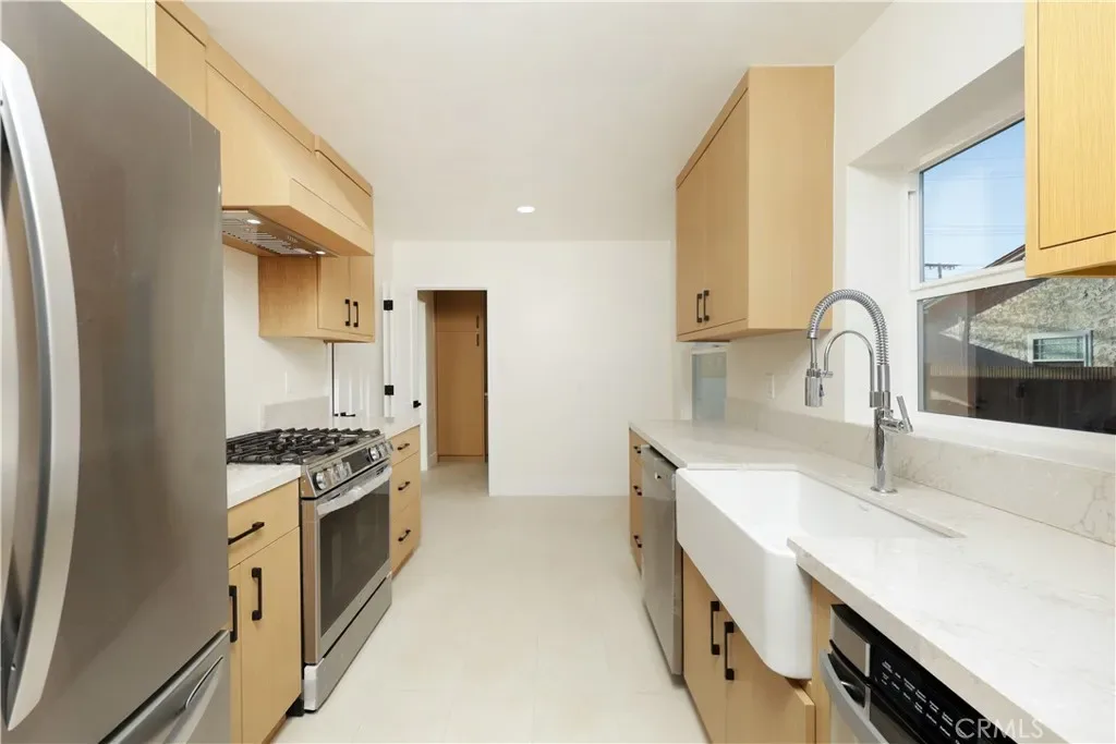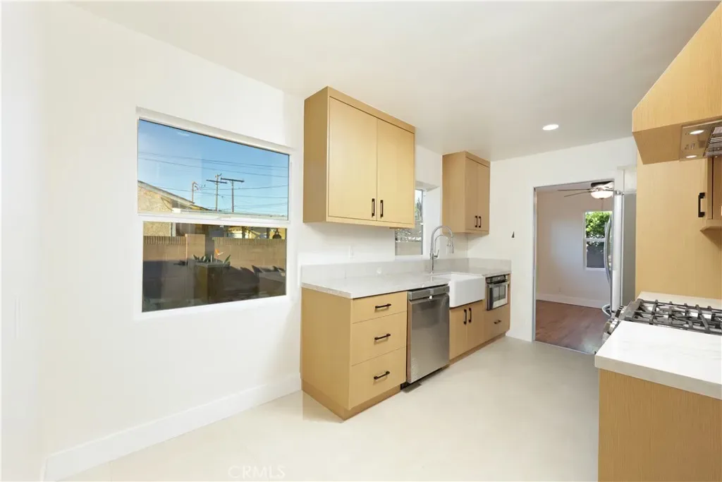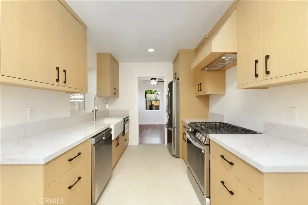 Charming remodeled home located on the northeast side of Downey! This beautifully updated 3 bedroom, 2 bathroom homes offers a large, inviting living room with a cozy fireplace, refinished hardwood floors that add warmth and character throughout. The fully remodeled hall bathroom showcases a new tub and shower with elegant tile walls, dual sinks with new cabinetry, a new toilet, and high-end faucets and fixtures. The modern kitchen has been tastefully upgraded with new cabinetry, quartz countertops, stainless steel appliances (included), a new sink, and a large pantry for added storage, plus an adjacent inside laundry room with newly installed cabinets providing additional convenience and organization. Additional improvements include new dual-pane windows, refinished interior doors, fresh interior paint, new baseboards, and a new water heater. The property also features a two car garage with an automatic opener and a generous backyard with covered patio. Located near Stonewood Mall and near Rio San Gabriel Elementary and Doty Middle School, this home has it all!