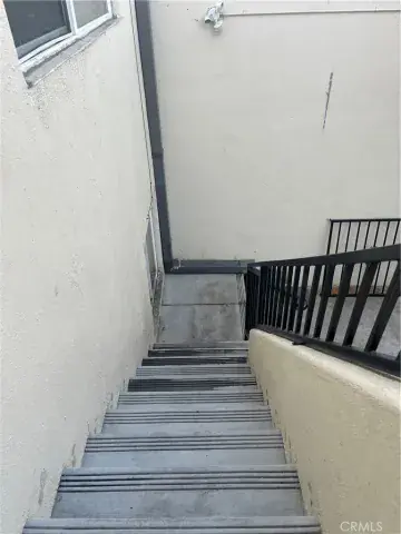 The front building on 5833 E Beverly Blvd includes two commercial units on the ground floor and 1 residential unit (2 bed 1 bath). At the alley entrance of 5833 there is a large garage style building that has been converted into two units. In between the front and rear building is an atrium with some palm trees and view of the sky.