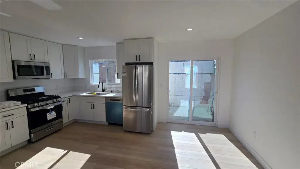 Step inside to appreciate the new light-colored flooring, designed to enhance the abundant natural light streaming through the new white-trim sliding glass door. The open living and dining area features all-new appliances, including a stove, dishwasher, refrigerator, plus in-unit washer and dryer. The sleek kitchen showcases quartz countertops and modern cabinetry, continuing into the bathroom with a quartz vanity and a custom-tiled shower with stylish wall and floor finishes.