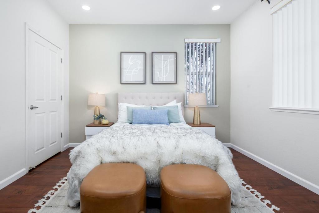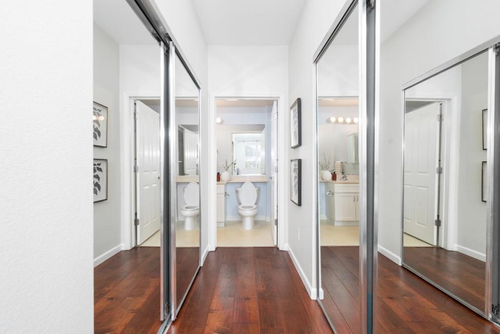 Welcome to this bright 2B-2B home in East Palo Alto offering rare Peninsula convenience at an increasingly hard-to-find price pointminutes to Palo Alto, Stanford University, Menlo Park, and U.S. Route 101, with Edgewood Plaza Shopping Center nearby for daily essentials. The bright open layout features bedrooms on opposite sides for privacy, each with a full bath and balcony access, plus high ceilings and hardwood flooring installed in 2018. The kitchen includes a dishwasher, microwave, electric range, and refrigerator, flowing into the dining and living areas for easy everyday living. Central A/C, forced-air heating, in-unit washer/dryer, one-car gated garage, and one additional parking space add comfort, while community amenities include a pool, spa, gym, clubhouse, and nearby parks.