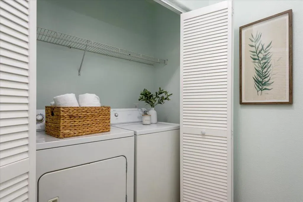 Welcome to your new serene retreat – a beautifully updated top-floor 2-bed, 2-bath condo in a secure, well-maintained building! This light-filled, east-facing, home features soaring ceilings and an inviting open floor plan. Triple-pane windows ensure a peaceful, whisper-quiet interior. The kitchen is thoughtfully designed for both style and function, with generous cabinetry, bright white appliances, and ample countertop space. The two sizable bedrooms are positioned on either side of the living area, with the primary suite featuring its own en suite bathroom. Recent upgrades include fresh paint, renovated bathroom vanities, and laminate flooring. An in-unit washer/dryer adds convenience. With a dedicated garage parking space located near the elevator, this home also offers close proximity to Highway 101, and is just minutes from the vibrant shops and dining along University Ave in Palo Alto. Enjoy nearby neighborhood favorites in Menlo Park like Haven (wine + cheese), Cafe Zoe (coffee/pastries + pizza) La Hacienda (groceries + taco/burrito bar) and Back a Yard (Caribbean grill), along with convenient access to major retailers and home improvement stores in East Palo Alto. This home truly offers comfort, convenience, and style – a hidden gem opportunity not to be missed!