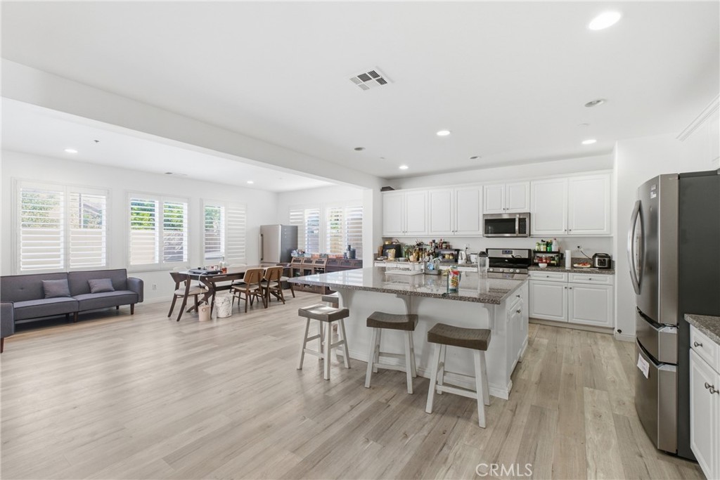 Welcome to this stunning 2013-built home located in the prestigious gated community of the Enclave in Eastvale. Offering approximately 3,291 Sq ft of thoughtfully designed living space, this residence features for multi-generational families or those seeking versatile living areas. The spacious open-concept living room and kitchen are perfect for modern living and entertaining. A large marble island anchors the kitchen, providing ample space and endless enjoyment for the culinary enthusiast. The homes also features wood blinds throughout, adding an elegant touch to the interior. A desirable main-floor bedroom with a half bath offers flexibility as a guest room, home office, or private suite. Upstairs, the primary suite includes a walk-in closet, soaking tub, separate shower, and dual vanities for a spa-like retreat. Fully paid Solar Panels System, dual-pane energy-efficient windows and LED lightings significantly reducing monthly electricity costs and providing environmentally friendly power generation. Highly rated school district and affordable HOA fees, making this home a smart choice for families. Well-maintained, turnkey condition, residents enjoy resort-style community amenities including a clubhouse, swimming pool, SPA, parks and walking paths. Conveniently located near shopping, dining, school, and CA-60, I-15 and SR-91 freeways.