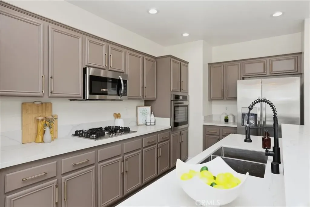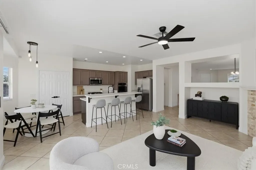 Welcome to this stunning, upgraded single-story home in the heart of Eastvale, where modern elegance meets everyday comfort. The home has been thoughtfully refreshed from top to bottom, offering a true move-in ready experience with high-end finishes and designer touches throughout. Step inside to a bright, open-concept layout enhanced by fresh interior paint throughout, including all cabinetry creating a clean, cohesive, and modern aesthetic. The showstopper of the home is the beautiful Calcutta quartz countertops that flow seamlessly throughout the kitchen and bathrooms, delivering a luxurious feel paired with durability and style. The kitchen is a dream for both cooking and entertaining, featuring all-new stainless-steel appliances, updated hardware, kitchen island with stainless steel sink, breakfast bar area, modern fixtures, and abundant counter space. Every detail has been carefully considered, from the recessed lighting that adds warmth and ambiance, to the brand-new ceiling fans and updated blinds throughout the home, providing both comfort and efficiency. The bathrooms have been tastefully upgraded with new mirrors and contemporary finishes, giving them a spa-like feel. Step outside to a private backyard designed for ease and functionality, complete with fresh mulch for a clean, low-maintenance landscape and a convenient storage shed for all your extra needs. With its highly desirable single-story layout, NO HOA, extensive upgrades, and prime location near top-rated schools, parks, shopping, dining, and major freeways, this home offers the perfect blend of style, convenience, and lifestyle. Homes like this don’t come around often don’t miss your opportunity to make it yours!