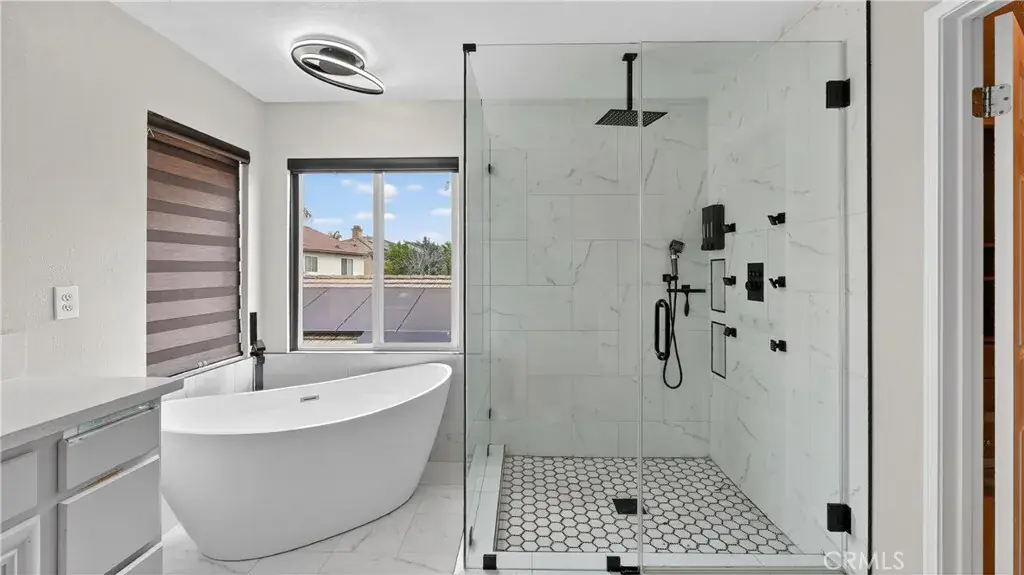 Upstairs, you will find five generous bedrooms and three full bathrooms. The primary retreat offers a spa-like ensuite with dual vanities, a modern freestanding tub, and dual walk-in closets. Down the hall, two junior bedrooms share a Jack-and-Jill bathroom. On the opposite side of the home, you will find two more junior bedrooms, a full hall bathroom, and a dedicated laundry room with a spacious linen closet. One of the most unique features of this property is the incredible 4-car tandem garage—an ideal space for a home gym, workshop, or home-based business.