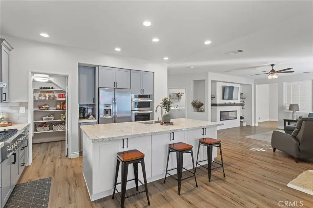 Stunning Eastvale Home: Spacious, Stylish, and Perfectly Positioned Welcome to 7307 Cobble Creek Dr., Eastvale, CA 92880 – the most beautiful home on the street, perfectly positioned directly across from Providence Ranch Park. This impressive 3576 sq. ft. residence was fully remodeled in 2022 and offers luxury, comfort, and modern living at its finest. Step inside to discover 4 spacious bedrooms (5th bedroom currently office space), 3 full bathrooms, a large upstairs loft, and a dedicated office… generous living space for everyone, remote work, and multi-purpose living. Enjoy the warmth of two fireplaces, including a brand-new LED fireplace in the great room and a stunning real stack-stone fireplace in the primary suite. The heart of the home is the fully remodeled kitchen, featuring all-new granite countertops, a stylish tile backsplash, smart appliances, new cabinetry, modern industrial fixtures, and a generous walk-in pantry. All three bathrooms have been tastefully remodeled, and the home boasts new LVP flooring, new baseboards, new recessed lighting, new outlets and switches, new light fixtures, and elegant shutters, plus roller shades throughout. The interior and exterior have been freshly painted for a crisp, modern look. Additional Upgrades Include: • Two new AC condensers • New water heater • New outdoor sprinkler system • New LED fireplace • Indoor and outdoor ceiling fans Backyard Oasis In 2023, the entire pool was re-plastered and fitted with a new pump. The pool also features solar heating, making it perfect for year-round enjoyment. The yard is beautifully finished with professional landscaping and hardscaping, and the property is enhanced by a stunning paver-stone driveway that adds curb appeal and elegance. Your Dream Home Awaits This home truly checks every box… location, luxury upgrades, space, and pride of ownership throughout. Don’t miss your chance to own one of Eastvale’s finest homes.