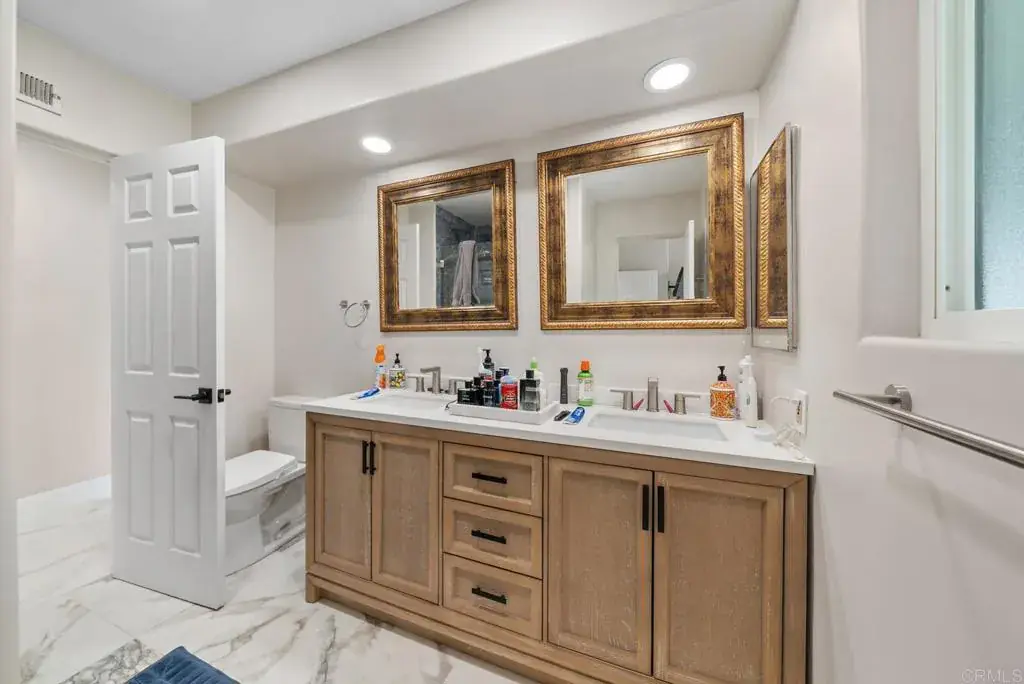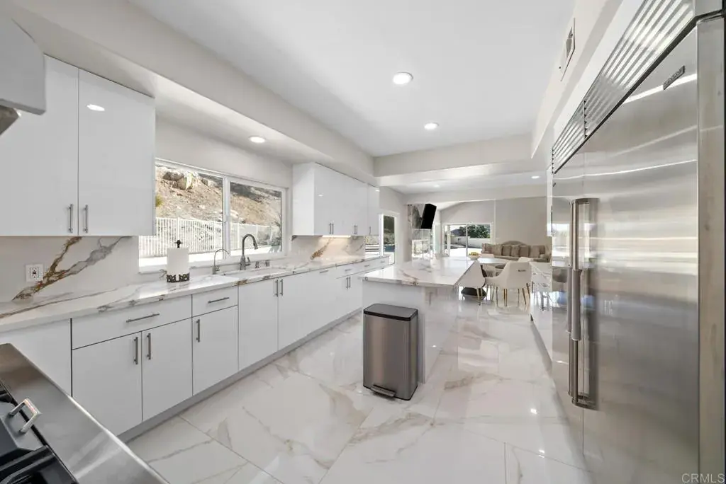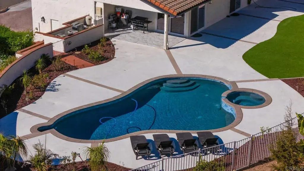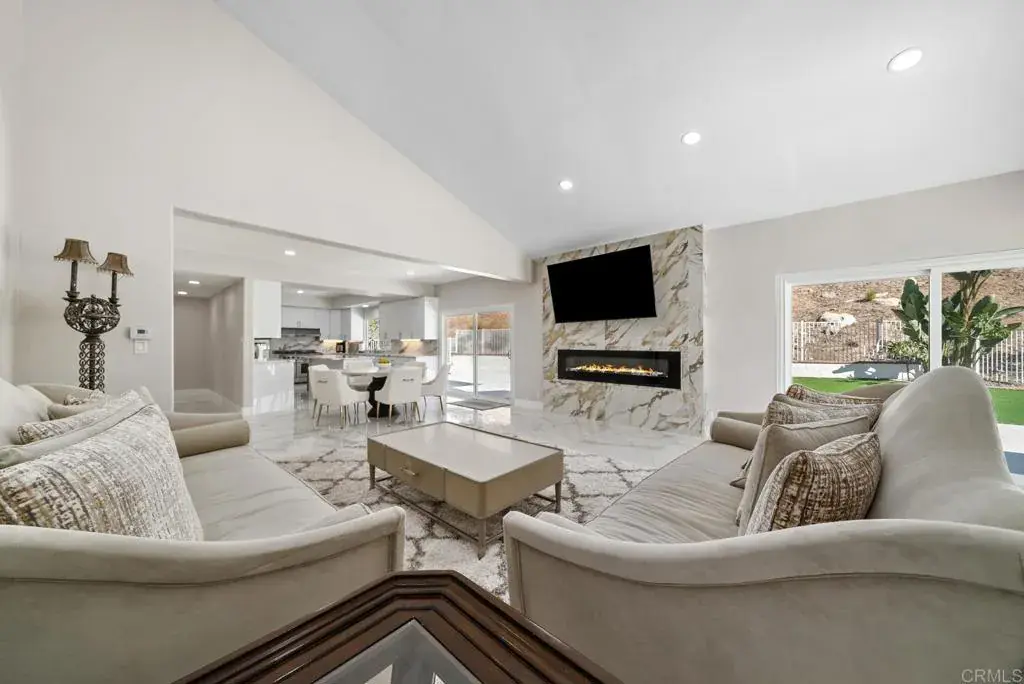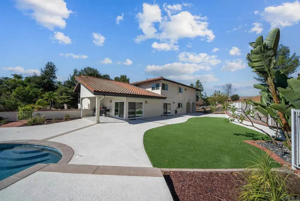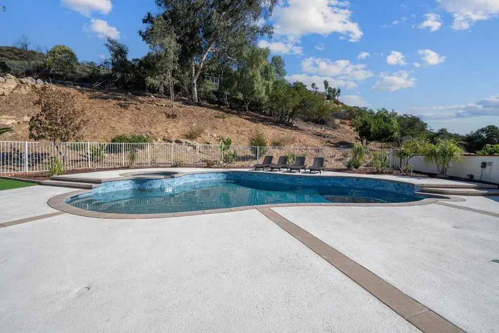 Custom Built Rancho San Diego hilltop estate with Spanish style design and modern interior upgrades! This home offers sweeping mountain views and an occasional peek view of Coronado Island from multiple balconies. Double door Entrance greets you to vaulted ceilings and a recently fully remodeled open floor-plan! The Gourmet kitchen features custom white cabinetry, quartz counter-tops, an extra-large subzero fridge, double ovens, and a large island that opens up to your nook eating area as well as the family room area! The family room offers a modern style fireplace and three sliding glass doors that take you out to the backyard area! The Backyard offers custom pool, jacuzzi, large sunbathing deck w views, covered patio area as well as plenty of room to entertain your family & guests! This expansive lot has room to build an ADU or add motor home parking if desired. Large Master-Suite offers gorgeous views, fireplace, walk-in closet completely built out & a gorgeous master bath w separate bathtub and stand-up shower! Fruit trees, including Mulberry, avocado, orange, tangelo, Peach, guava, lemon, apricot, Cheremoya and more! A large driveway suitable for six cars, paired with an oversized garage ensure you will have plenty of parking for any guests. Come live the good life in this quiet neighborhood of East County!