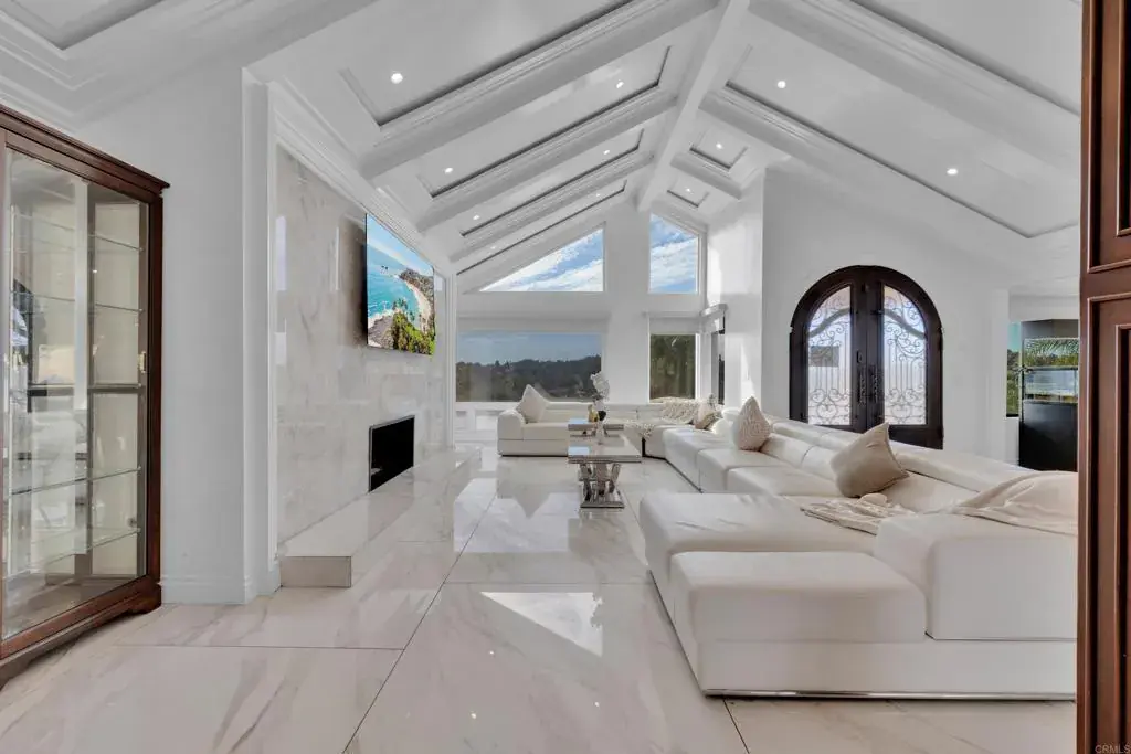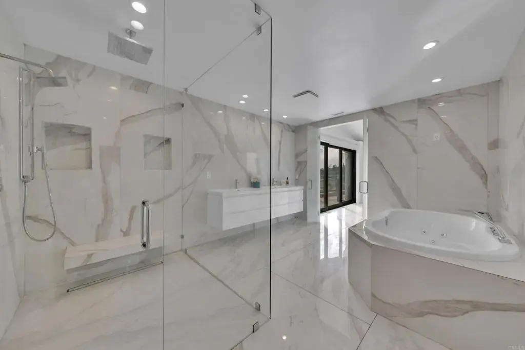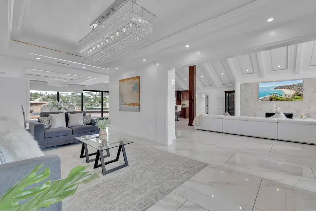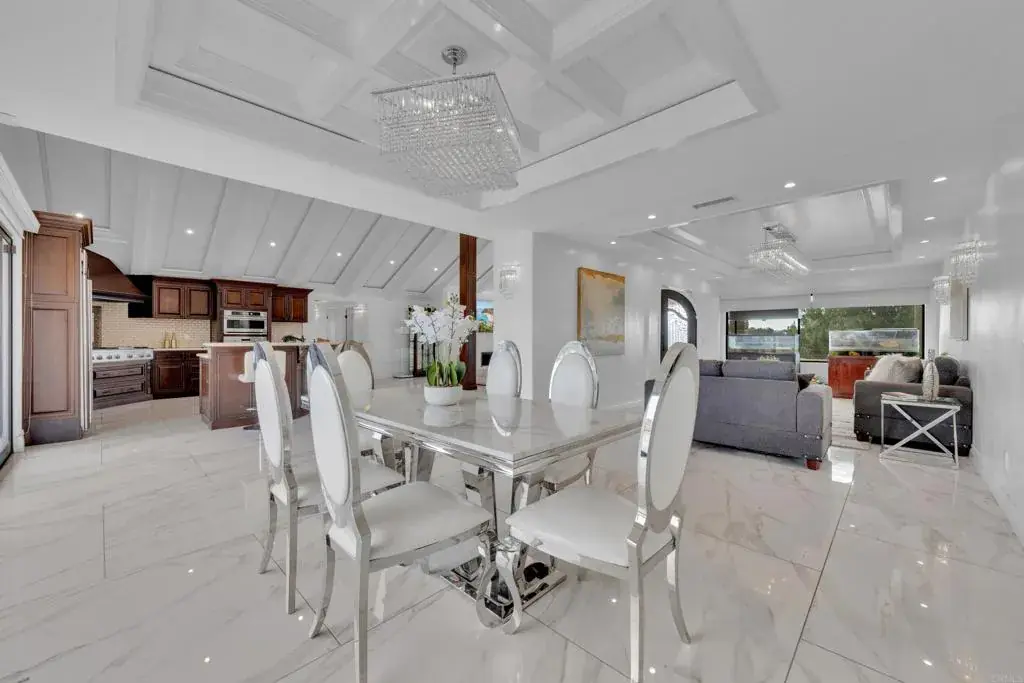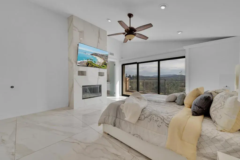 Beautiful 4-bedroom, 3.5-bath single-family home in El Cajon offering stunning panoramic views and a private backyard pool perfect for entertaining. This well-maintained residence features elegant tile flooring throughout, beautifully updated bathrooms, and striking custom architectural ceilings that create an open, dramatic living space filled with natural light. The spacious living room showcases an elegant marble slab fireplace, while the kitchen offers rich cabinetry, generous counter space, and impressive ceiling detail that enhances the home’s upscale feel. Enjoy seamless indoor-outdoor living with scenic surroundings, comfortable gathering areas, and a backyard designed for relaxation and entertaining with paid off solar.