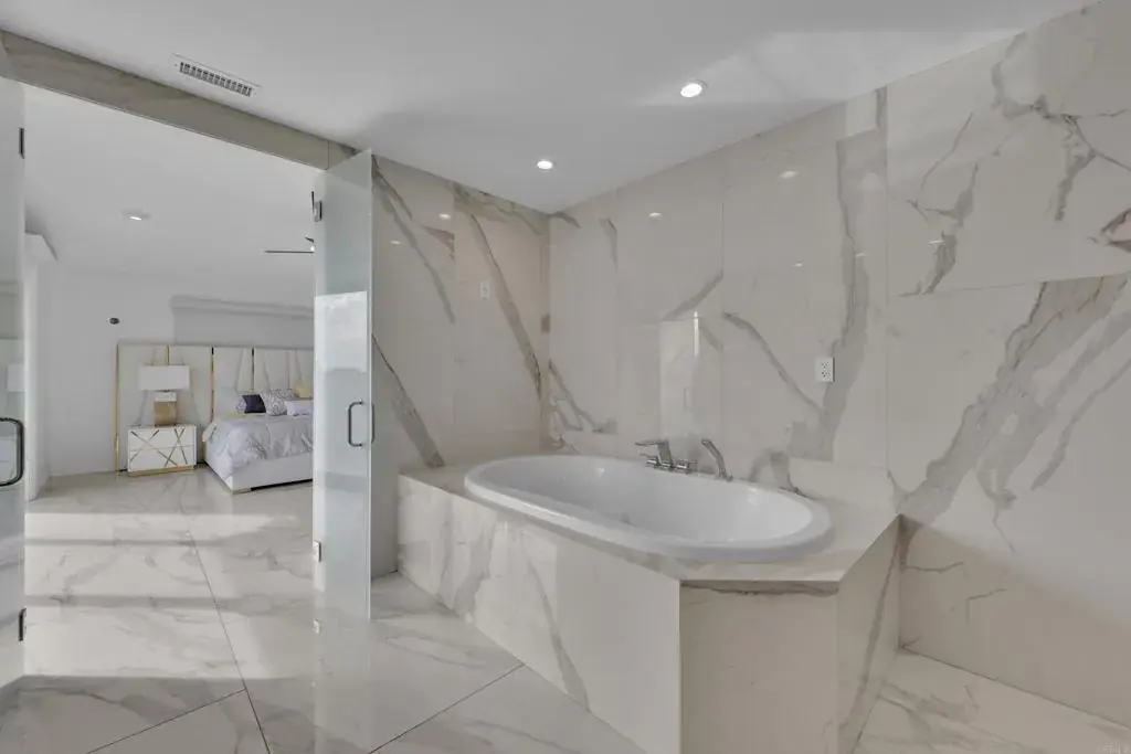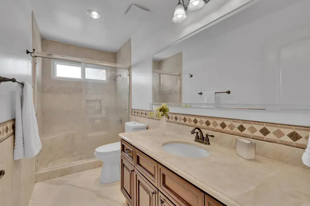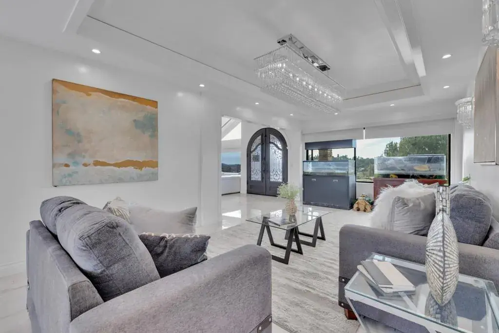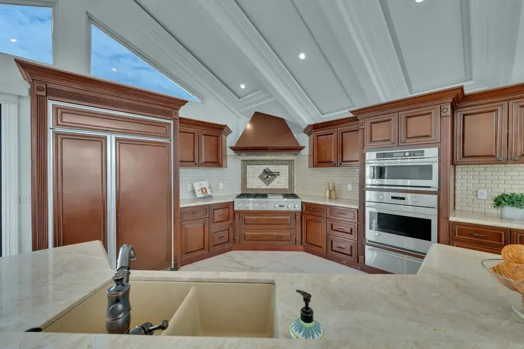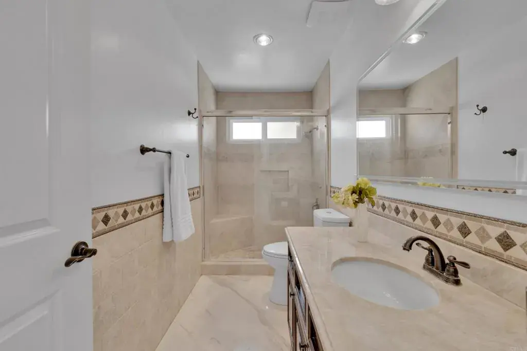 Beautiful 4-bedroom, 3.5-bath single-family home in El Cajon offering stunning panoramic views and a private backyard pool perfect for entertaining. This well-maintained residence features elegant tile flooring throughout, beautifully updated bathrooms, and striking custom architectural ceilings that create an open, dramatic living space filled with natural light. The spacious living room showcases an elegant marble slab fireplace, while the kitchen offers rich cabinetry, generous counter space, and impressive ceiling detail that enhances the home’s upscale feel. Enjoy seamless indoor-outdoor living with scenic surroundings, comfortable gathering areas, and a backyard designed for relaxation and entertaining with paid off solar.