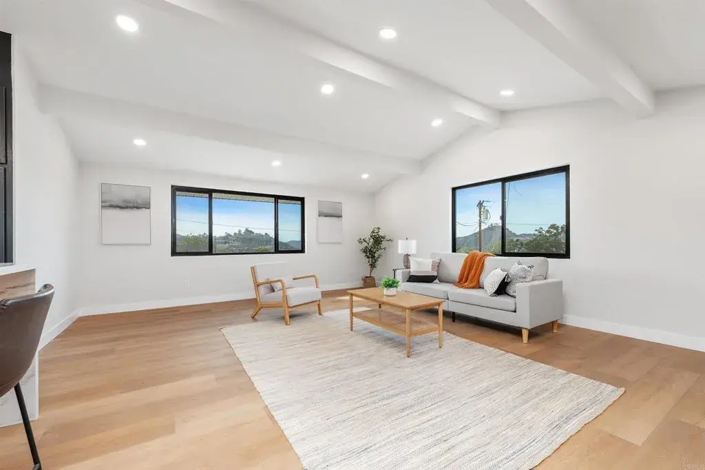 Newly remodeled three-bedroom, two-bath ranch-style home with views in a highly desirable El Cajon neighborhood. Situated on an expansive over 0.53-acre lot, this move-in-ready property features extensive upgrades throughout, including newer windows, fresh interior and exterior paint, newer flooring, a fully updated kitchen with stainless steel appliances and a newly resurfaced pool.The oversized lot offers privacy, space to entertain and potential for an ADU or additional structures (buyer to verify). Heading outside, the property’s lush landscaping and ample parking create a welcoming environment. The spacious backyard features an inviting pool and a brick patio, large great for outdoor living and entertaining. Conveniently located near schools, shopping, dining and transportation. A rare opportunity to own a turnkey home on a large lot in an established area.