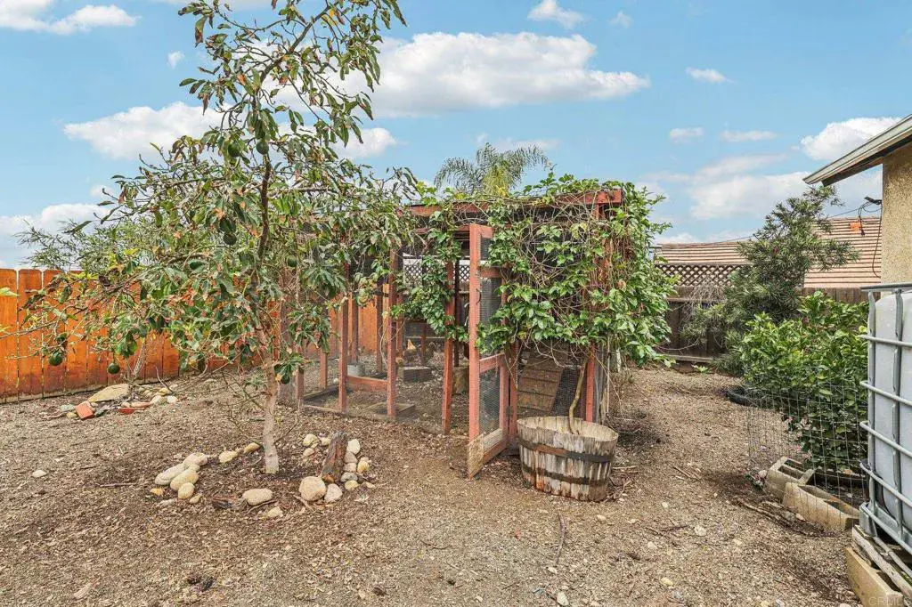 Highly sought after single-level home with vaulted ceilings and a bright open floor plan in desirable Rancho San Diego neighborhood! The kitchen features stainless steel appliances, gas cooking, and opens seamlessly to the dining area and living room. Great layout has kitchen with direct access to the covered backyard patio, ideal for indoor-outdoor living and for entertaining. Three bedrooms are thoughtfully located down the hall, including a spacious primary suite with en-suite bathroom and access to the backyard. The fully fenced yard is a standout feature offering garden areas, chicken coops, an avocado tree, rain barrels, and elevated neighborhood views with an outdoor BBQ area plumbed for natural gas, power, and water. Interior upgrades include dual-pane windows, vinyl plank flooring, recessed lighting throughout, three skylights and a solar tube in the bathroom providing abundant natural light, as well as a newer HVAC and water heater. The attached 2-car garage has epoxy flooring with elevated ceilings and convenient overhead storage. Enjoy three nearby county parks, two golf courses, close proximity to schools and community college, shopping, dining, and movie theatre with easy access to surrounding neighborhoods and commuter routes. Don’t miss out on this rare one!