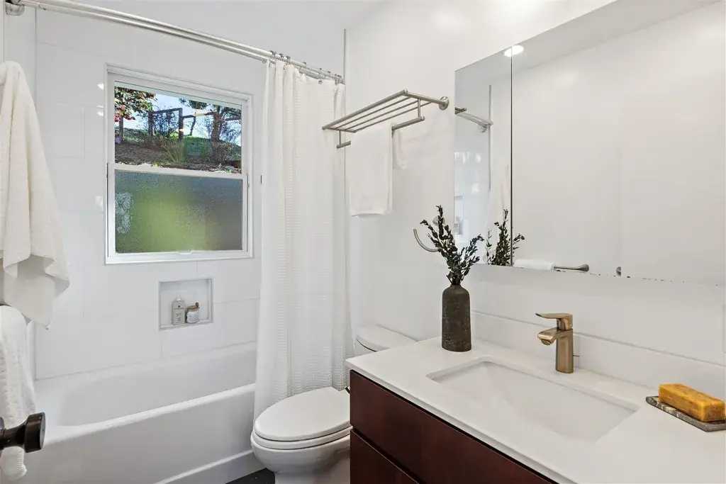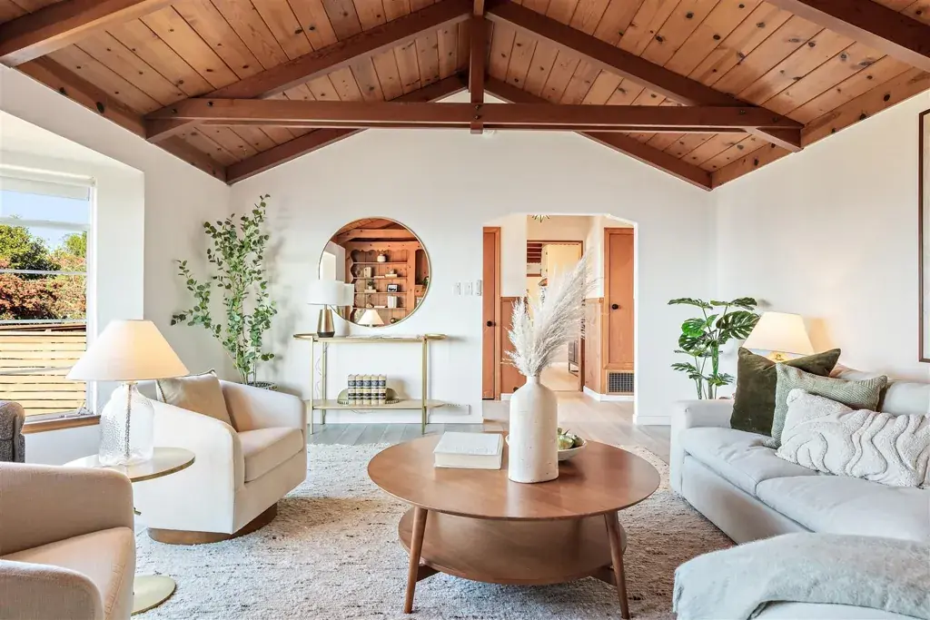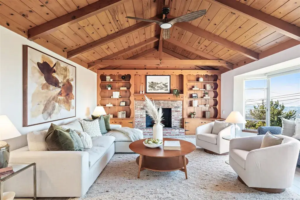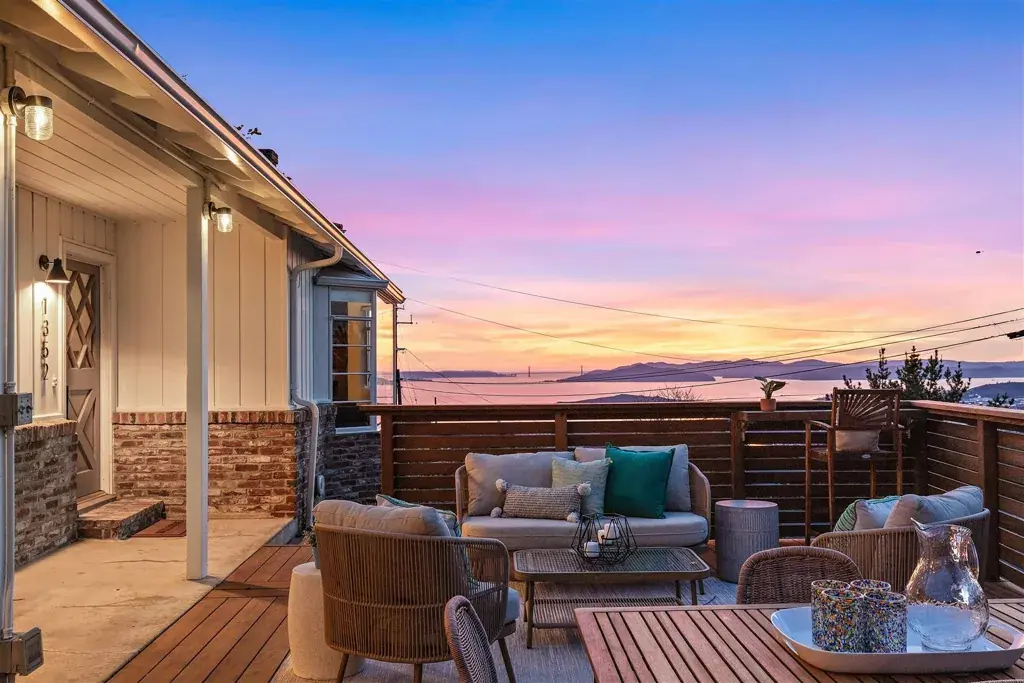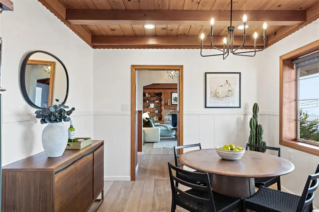 Welcome home to 1352 Brewster Drive, a captivating 3BR, 3BA mid-century home that seamlessly blends modern upgrades with timeless vintage charm-set against sweeping Bay views & an expansive backyard with exceptional potential. Thoughtfully updated while honoring its architectural roots, this single-level residence offers style& flexibility in one of El Cerrito’s most desirable neighborhoods. Clean lines, warm wood tones & classic mid-century details create an inviting backdrop for contemporary living. Large windows frame stunning outlooks & fill the home with natural light, enhancing the connection between indoors & out. The flexible floor plan includes: gracious living room with exposed beams centered on the original fireplace & built-ins; updated eat-in kitchen; primary suite with dedicated family room & home office space; two additional bedrooms with ensuite baths; and attached 2-car garage with laundry. Discover a lower deck for relaxing with built-in benches, as well as a spacious, terraced backyard with possibilities for an ADU, sport court or garden oasis. A short walk to award-winning Madera Elementary, while also being accessible to world-class hiking, AC Transit to downtown Berkeley or del Norte BART & shopping/dining at El Cerrito Plaza, Solano Ave or North Berkeley.