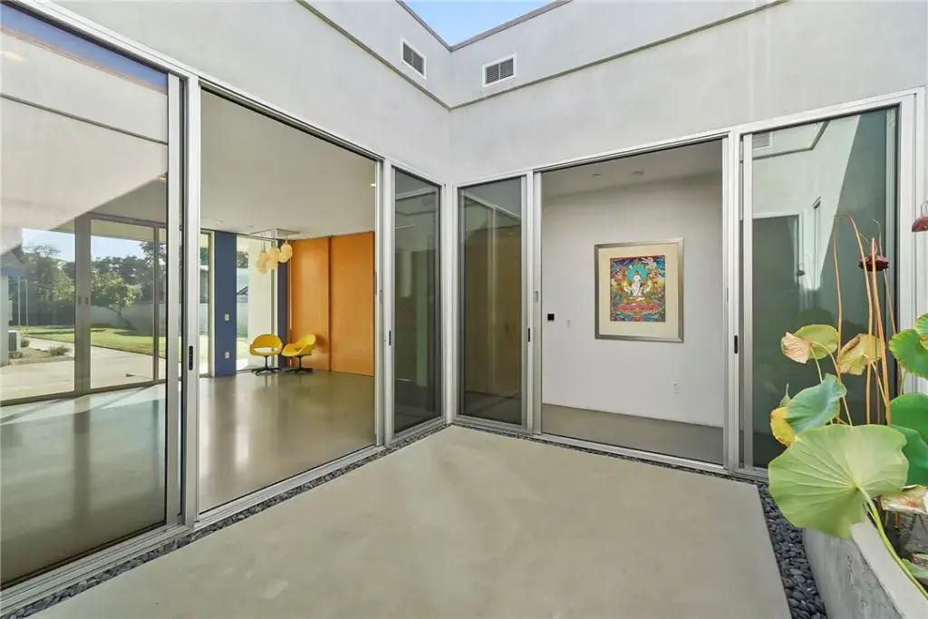 Inside, 9-foot ceilings paired with double-paned, argon-filled energy-efficient windows and sliding doors enhance both comfort and efficiency. At the center of the home, a private courtyard offers a tranquil space to enjoy morning coffee, gather with loved ones, or simply unwind in a peaceful setting.