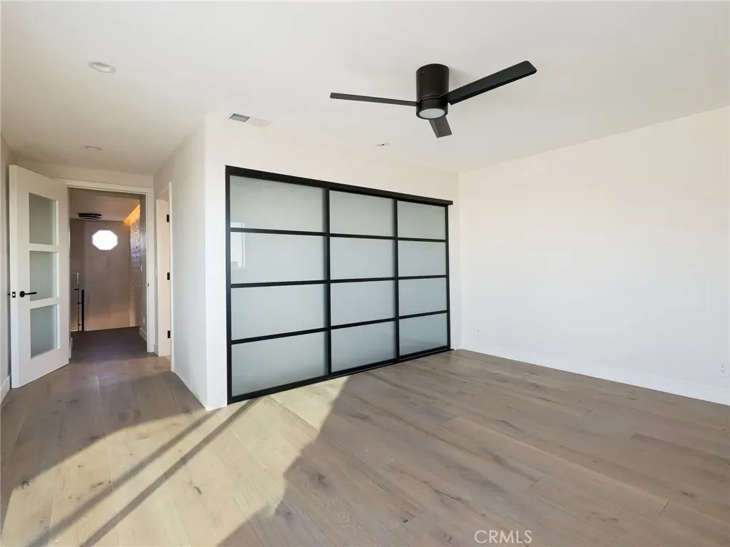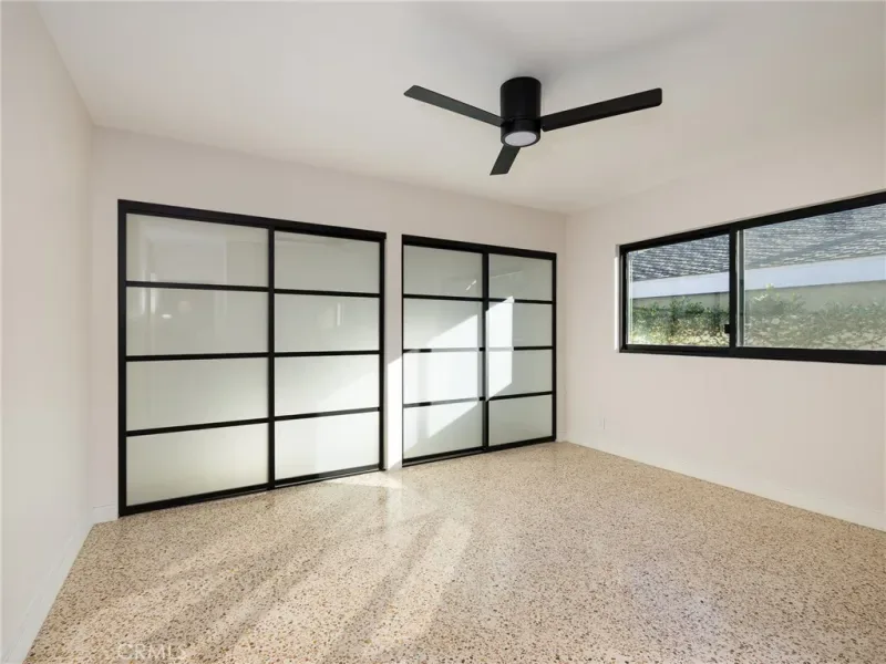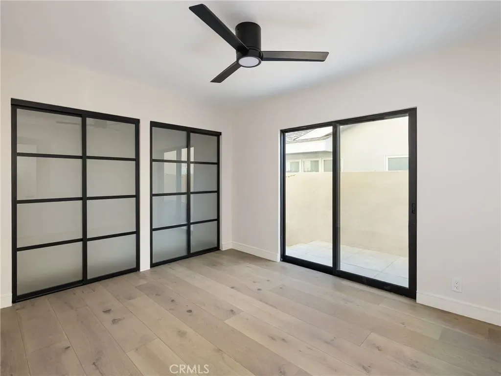 A dedicated laundry room offers a new LG laundry tower and cabinetry. Three downstairs bedrooms provide flexibility for guests, multigenerational living, or office space, each with generous closets and modern sliding doors.