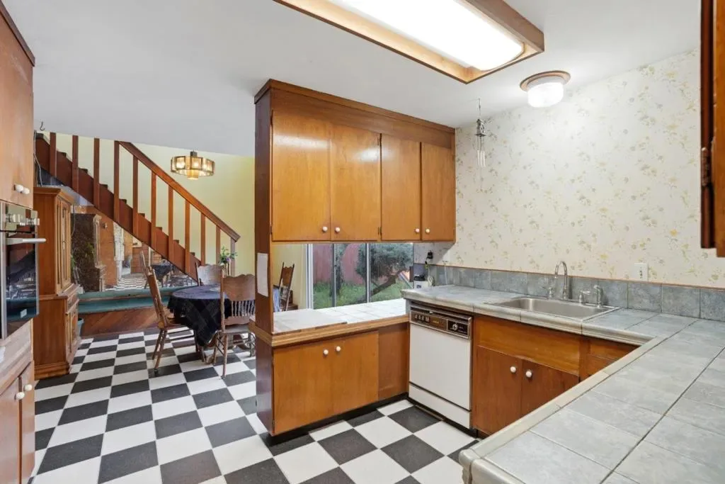 Welcome to this spacious 6-bedroom, 3.5-bathroom home located in the hills of May Valley, with La Moine Valley View Park directly behind with gate access, and no direct neighbors across the street! This is the original site of the Maloney Montessori school, which served El Sobrante and Richmond for over 50 years. The home is a wonderful time capsule, for you to make into your own vision. Enter by the living room, with a fireplace, hallways with wood shake shingles to protect walls from little hands. Eat in Kitchen with stairs going to 2 large bedrooms and bath upstairs. On the ground floor you’ll find a half bath for children, a full hall bath, 3 bedrooms and a primary bedroom with bathroom. Towards the back of the home experience space of an expansive family room with a brick corner and wood paneling surround. Trees include a plum, apricot, lemon and others. Valley View Elementary school within walking distance, and is behind the home.