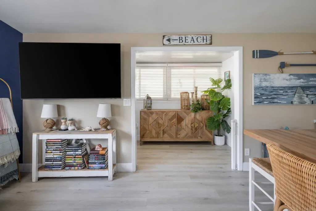 Welcome to your Coastal Retreat, located in the VERY desirable Valley of Dreams Park. Perfectly situated between Leucadia Blvd and Jasper St, west of Hwy 101, and surrounded by multimillion dollar homes. Just a short stroll takes you to Neptune Ave, Beacon’s Beach and some of Leucadia’s most popular restaurants and shops. Inside you’ll find a modern, casual coastal vibe with thoughtful upgrades completed within the last three years. This home is available fully furnished, making it a true turnkey opportunity! New upgrades within last 3 years totaling just over $80K include: architectural asphalt composition shingle roof, Vinyl flooring throughout, copper plumbing underneath, AC and furnace, added 2 floor vents, four Renewal by Anderson windows, primary bedroom Barn Door with custom mirrors on both sides, foyer bathroom door with outer custom mirror, 2 matching doors for full bath and guest room, door jams entering living room and also entering primary bedroom, 2 low-flow tall toilets, 3 ceiling fans: living room, guest room and full bathroom, non-permitted half bath, new large butcher block with 4 stools, pullout trash cabinet in kitchen, reverse osmosis in kitchen, refrigerator, blinds in foyer, paved side gated area, down spout gutters, and a storage unit in carport. No Property tax. Space rent is $2050 per month.