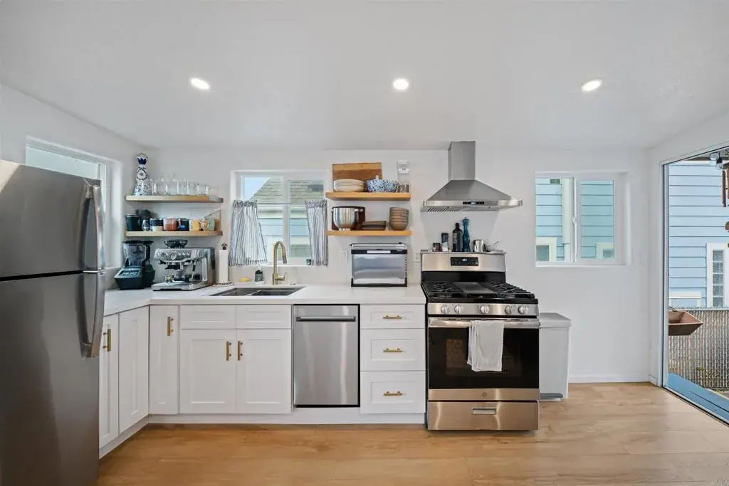 This fully renovated beach cottage captures the quintessential Leucadia, Encinitas, lifestyle—light, bright, breezy, and just steps from the ocean. With plenty of room for family, guests, or a home office, the 3-bedroom, 1-bath layout feels open and welcoming. Enjoy this renovated beach home with stylish laminate wood floors, a beautifully updated kitchen with stainless steel appliances, a newer roof, and fresh interior paint throughout. This is a rare opportunity in one of North County’s most beloved coastal communities—you truly have to see it in person to appreciate its charm and value! No HOA, but there is a Land lease: $2200/mo Buyers must be approved by park management as a condition of sale. Pets allowed with restrictions. Parking and access to the home are on Avocado St.