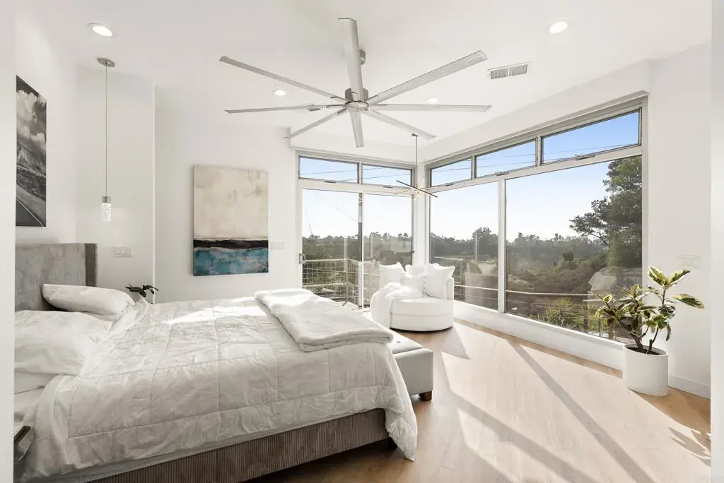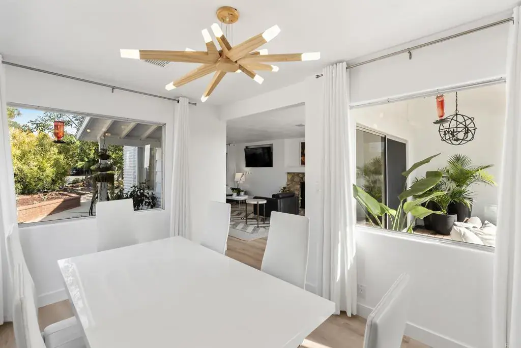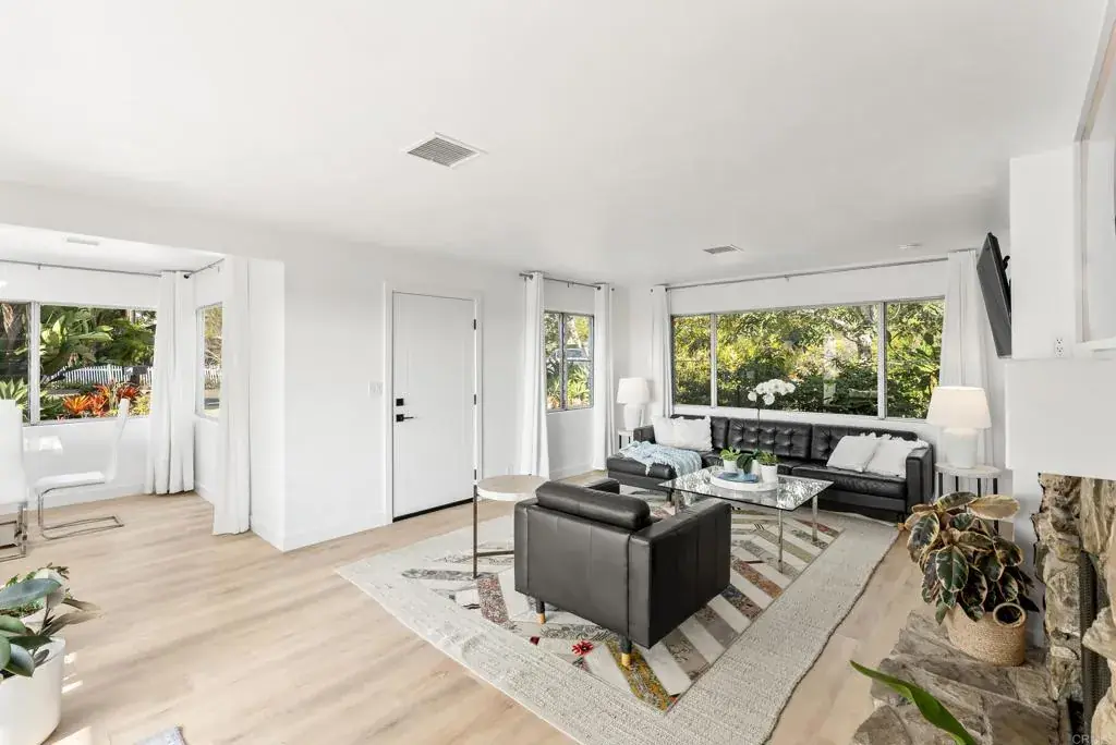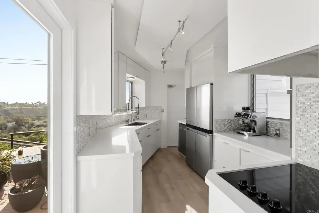 Mid-Century Modern Beauty with Ocean Views on 1.24 Acres in Leucadia Welcome to a rare opportunity to own a completely reimagined 1956 mid-century modern, situated on 1.24 private acres in the hills of Leucadia—one of San Diego’s most sought-after coastal communities. This single-story home combines timeless architecture with extensive, high-end renovations, delivering ocean and hillside views from nearly every room. Inside, you’ll find modern finishes throughout, with attention to detail in every space. The bedroom wing has been completely rebuilt from the floors up, offering updated construction, style, and peace of mind. The result is a seamless blend of mid-century charm and contemporary luxury. Step through the front door into a sunlit living area with panoramic picture windows and sliding glass door that invite the outdoors in. The living room, complete with a gas fireplace, flows into the dining area and a sleek galley kitchen featuring quartz countertops, stainless steel appliances, modern cabinetry, and designer hardware. The primary suite is a serene retreat with expansive views, remote-controlled shades, an en-suite bath, and a spacious dressing room with its own washer and dryer. Each of the four bedrooms features oversized upgraded solid-core doors, and one includes a private entrance, making it ideal for guests, in-laws, or rental income. Additional highlights include: • 2020 4-zone Lennox Elite HVAC for customized comfort • Two full laundry areas, each with washer and dryer • Luxury vinyl plank flooring throughout • No interior steps for easy accessibility • Garage parking for two cars, plus space for at least five more vehicles • Rooftop deck with stunning ocean-view sunsets • Xeriscaped landscaping with succulents and water-wise design • No HOA and no Mello-Roos Whether you’re entertaining outdoors on the spacious patio or enjoying the peaceful, private setting with postcard-worthy views, this home offers the ideal blend of coastal living, modern design, and everyday functionality.