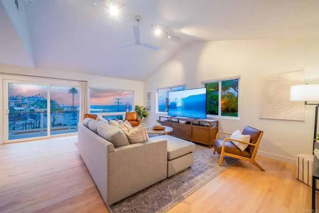 Huge Price Reduction! Discover the ultimate coastal treasure at 231 5th Street, Encinitas, CA—truly a real-life unicorn in the world of real estate! This 3-bedroom, 2-bathroom sanctuary spans nearly 2,000 square feet, seamlessly blending modern luxury with stunning beach and whitewater views that greet you from every angle. Just steps away from the sands of Moonlight Beach, one of San Diego’s most cherished spots, this home has been fully remodeled and is completely turnkey. This incredible home has the ability to be a single family home with a detached garage/studio and yard or two separate units, one upper and one lower, to provide the potential for multi-generational living or a nanny suite under the same roof. Each unit contains fully equipped updated kitchens with premium stone counters and sleek stainless appliances, fully renovated bathrooms, and private living space. Perfect for when you want family living while maintaining privacy. Or if you choose, long-term rental possibilities are an option. The detached garage is still under renovation, complete with a full bathroom, washer/dryer and studio kitchen. A roof top deck will capture all of the action at Moonlight beach and fantastic sunsets. This space could be a garage, studio, office, workout room, storage, etc. Step outside into your private oasis, where a brand new hot tub and beautiful outdoor spaces await. Enjoy the expansive deck and balcony, each offering breathtaking vistas. Copper rain gutters add a sophisticated touch to the exterior, while the interior shines with dual pane windows, hardwood floors, and recessed lighting. Additionally, parking is convenient with a detached garage, guest parking, and accessible street parking. This exceptional property is ready to be all yours, offering a lifestyle that’s both luxurious and relaxed. Don’t miss out on this rare opportunity—fully furnished and waiting for you to make it your own slice of paradise!