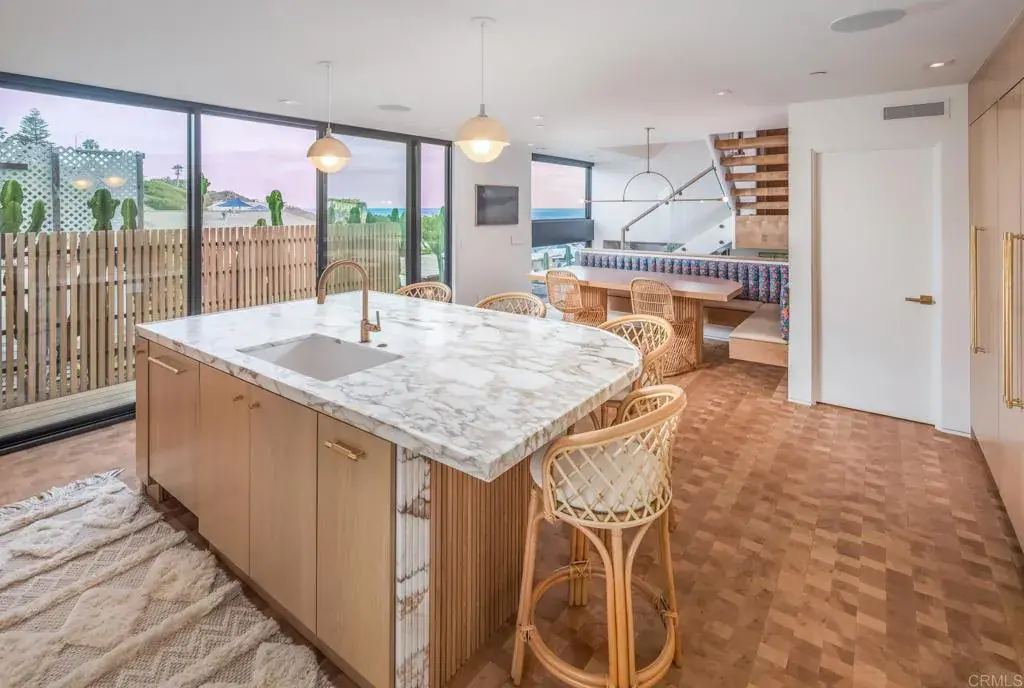 Just steps from the sand at Moonlight Beach, this recently built modern masterpiece offers the ultimate coastal lifestyle. Designed and developed by award-winning dasMOD, the home blends sleek architecture, timeless design, and unobstructed ocean views. With 5 bedrooms and 3 bathrooms spread across 2,911 SF, the residence was crafted to maximize natural light and create effortless indoor-outdoor flow. Inspired by Scandinavian modernism, the interior showcases clean lines, warm natural materials, and a neutral palette that feels both elevated and inviting. Walls of glass open the living spaces to the ocean breeze, while the 300 SF rooftop deck with jacuzzi sets the stage for unforgettable sunsets over the Pacific. This close to the ocean, parking is a privilege—one this home enjoys with a two-car garage plus capacity for multiple vehicles in the private driveway. Adding remarkable versatility, discover the Basement Suite: a fully self-contained apartment. Complete with two bedrooms, one bathroom, separate laundry facilities, and a dedicated exterior entrance, this meticulously designed space offers an ideal, independent retreat for extended family, staff, or guests. It’s the perfect, elegant solution for modern multi-generational living. Unlike blufftop homes nearby, this unique site delivers commanding whitewater views without concerns of bluff stability—making it as practical as it is breathtaking. This property represents a rare chance to own one of Encinitas’ most coveted coastal addresses. Here, every day feels like a vacation—surf, stroll, and savor the beachside lifestyle right outside your front door.