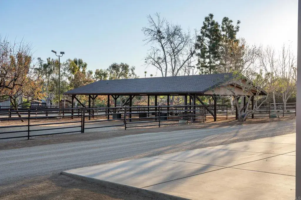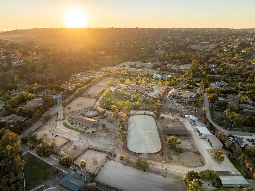 Nestled in the heart of Olivenhain within the city of Encinitas lies this spectacular equestrian sanctuary. Just 7 miles from the coast and situated on 10 usable acres of beautifully manicured grounds, is an expansive main residence, a guest home, a caretaker’s living quarters and all the amenities of a horse lover’s dream. The main home’s lodge inspired architecture is cozy and inviting with gorgeous, exposed wood beams, stone lined walls, hand-carved Torrey Pine interior doors, and several interior courtyards that accent the home. Stunning views of the lush landscape, horse pastures and a beautiful show barn are visible from the main residence. The current owner spared no expense bringing the grounds to perfection within the last year and a half by adding beautiful shelters in each of the 3 irrigated pastures, reimagining the main barn with all new interior walls, feeders, mats, a wash area including new turn-outs, and a brand-new, gable breezeway pole barn. Additional improvements include the planting of over 25 fruit trees in a beautiful grove, solar lit pathways throughout, fresh new landscaping and the design and implementation of several irrigation and plumbing systems to benefit and improve the ranch. This property operates as a working horse ranch with room for 20 horses including a Eurociser, a large riding arena with a viewing platform, numerous fenced paddocks, several storage buildings for ranch equipment and hay, rooms for feed and supplements, a gym with a golf simulator system, and a well with filtration system. With close proximity to the town and coast of Encinitas, along with direct access to miles of walking and riding trails, this property provides for the utmost privacy with a community feel. 3113 Camino del Rancho is a rare gem in the historic town of Olivenhain.