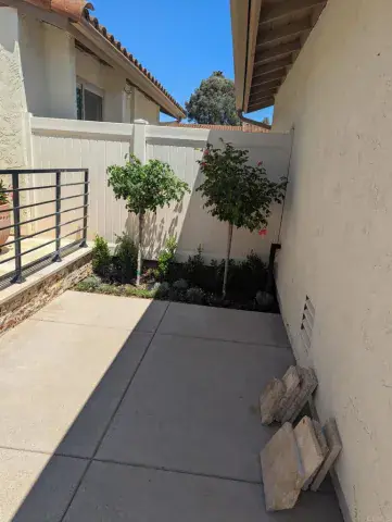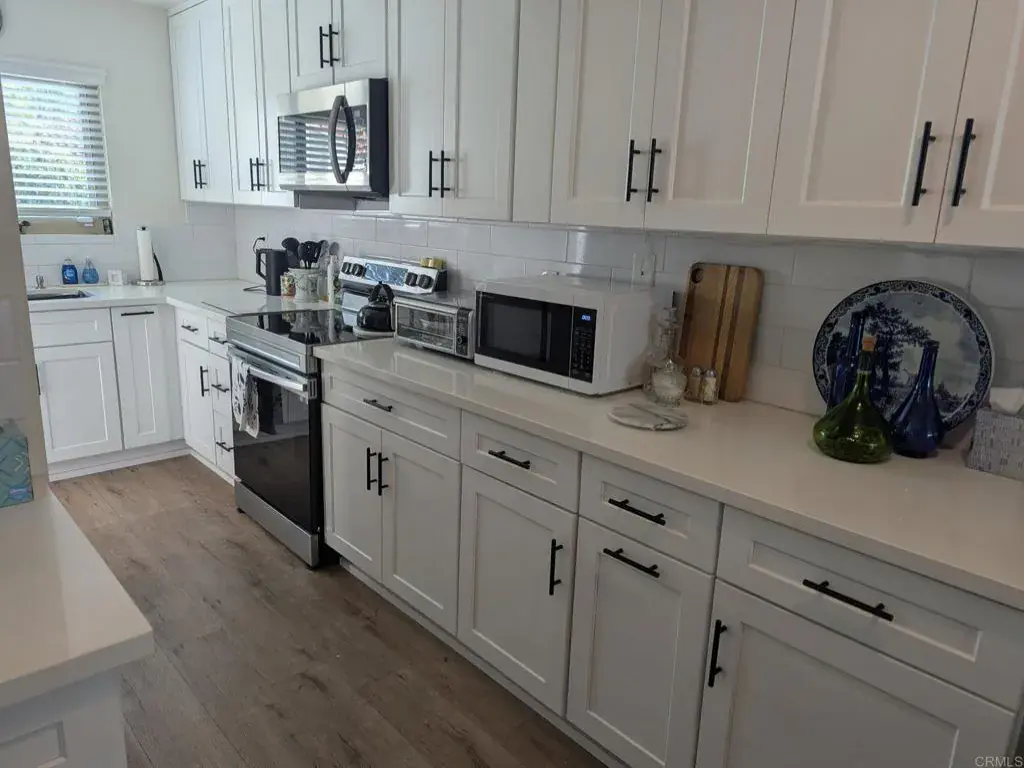 55+ YEAR OLD OLD COMMUNITY IN HIGH COUNTRY VILLAS ENCINITAS! Exciting new listing! A completely remodeled unit inside and out. Two bedrooms, 2 bathrooms, single level floor plan including all new windows, doors, bright open living area, custom kitchen with new stainless appliances, security system, ceiling fans in both bedrooms, new vinyl plank wood looking flooring throughout, new tiled bathrooms, window treatments, plantation shutters in bedrooms, and elegant motorized shade in living room. In addition, pull out shelving in kitchen and linen closet. Washer and dryer located in the one car garage. The front and back patios offer spectacular additional outdoor living space including a view overlooking the green belt with trees and even occasional wildlife. The front patio features classic Italian stone tile and a custom breakfast bar where the morning sun is always warm and inviting. The neighborhood is famous for its many community activities and club house events including monthly happy hours, holiday dinners, weekend movies, 9-hole golf course, pickleball, bocce ball, you name it!! The pool, jacuzzi, outdoor changing and shower areas are relaxing and makes for great socializing. Go to the High Country Villas website and see all that this unique community offers for the quality of life everyone seeks. See it today!