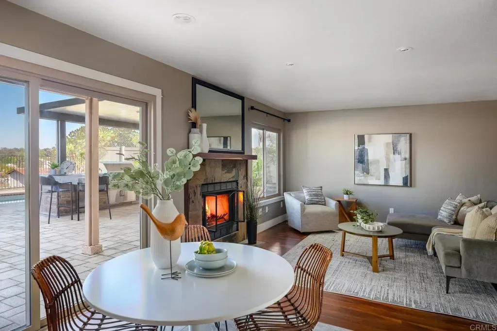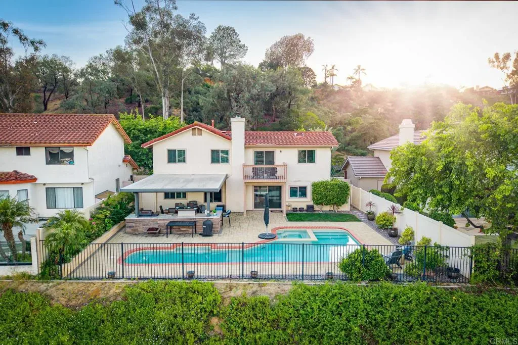 Step into a refined sense of comfort and privacy with this beautifully appointed two-story home, ideally situated in the heart of Encinitas, CA. Tucked away on a quiet cul-de-sac and set on a generous lot just under 10,000 square feet, this residence offers both space and serenity. Originally built in 1986 and thoughtfully expanded to 2,336 square feet, the home features four well-proportioned bedrooms and tastefully remodeled bathrooms, creating a flexible layout suited for both everyday living and hosting. With no neighbors in front and clear views to the east in the backyard, the setting feels peaceful and secluded. From the moment you enter, the home welcomes you with a sense of warmth and quality. At its center is a fully reimagined kitchen designed for both functionality and style. Outfitted with premium Wolf appliances including a gas range, oven, and microwave, along with a Sub-Zero refrigerator, this space is ideal for culinary enthusiasts. Quartz countertops, a designer backsplash, and custom Bellmont cabinetry complete the space with a clean, modern finish. The adjoining living area features engineered hardwood flooring and a slate tile fireplace, complemented by an Indonesian Rosewood mantle. A custom-built bar crafted from a Zinfandel barrel sourced from Powell Mountain Cellars adds a distinctive and inviting touch. Vaulted ceilings and Plantation shutters enhance the sense of openness while maintaining privacy. An additional downstairs bedroom can be used as an office or den with a full bath in the hall. The private primary suite offers a serene and thoughtfully designed retreat, enhanced by brand new carpet, tile flooring and an abundance of natural light. The spa inspired ensuite features dual vanity sinks, a spacious walk-in closet, and a separate soaking tub and shower, creating a perfect balance of comfort and functionality for everyday living. The secondary bedrooms are generously sized and enjoy soft east facing views, bringing in beautiful morning light. Each room is equipped with new carpet and ceiling fans with remote controls for added convenience. The guest bathroom is equally well appointed, featuring dual vanity sinks and a combination tub and shower with a sleek glass enclosure, providing both style and practicality for family and visitors. A spacious east facing bonus room opens to a private balcony finished with durable TREX decking, offering a peaceful setting to enjoy morning light and views of the backyard and pool. The outdoor space has been carefully upgraded to support both relaxation and entertaining. Features include new vinyl fencing, Belgard pavers, and a large covered Alumawood patio cover. The outdoor kitchen area is equipped with a Lynx grill, refrigerator, Yoder smoker, and granite countertops, making it ideal for gatherings. The pool and spa provide a refreshing retreat, supported by a newly installed Pentair Superflo VS pump in 2025. Additional improvements throughout the home include updated PEX plumbing, a new gas water heater, Milgard windows for improved energy efficiency, and a high-performance skylight in the primary bedroom with remote operation. A whole house fan offers an efficient way to keep the upstairs cool and comfortable. With a two-car garage offering ample storage and a location just minutes from Encinitas beaches, dining, award winning schools and community amenities, this home presents a rare opportunity to enjoy comfort, privacy, and coastal convenience in one of North County’s most sought-after areas.