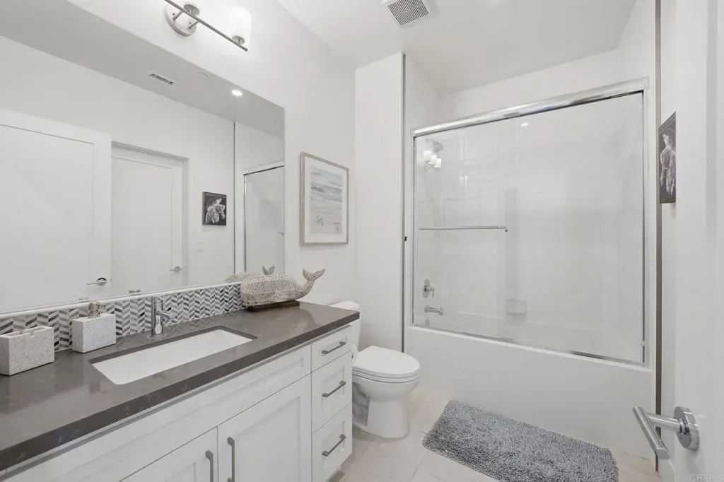 Perfectly positioned in the heart of Leucadia, this exceptional California Coastal Craftsman showcases sweeping ocean views and an unbeatable coastal location just moments from the sand. Enjoy the best of beachside living with a 10 minute walk to the beach and easy access to both Stone Steps and Beacon’s Beach, while also being within walking distance to the vibrant shops and restaurants along Highway 101. Located within the highly regarded Encinitas Union and San Dieguito Union High School Districts, this home also offers access to some of North County’s top-rated schools. Inside, the home is filled with natural light and designed for both comfort and entertaining. Expansive stacking sliding glass doors connect the main living areas to the outdoors, inviting in ocean breezes and showcasing the home’s blue water views. The gourmet kitchen is both stylish and functional, featuring quartz slab countertops, a full tile backsplash, custom shaker cabinetry, and a large center island ideal for gathering. Premium GE Monogram stainless steel appliances including a professional cooktop, double convection ovens with Advantium technology, wine refrigerator, drawer microwave, and dishwasher. The primary suite offers a spa-inspired retreat with a freestanding soaking tub, walk-in shower, and dual vanities. A standout feature of the home is that every bedroom includes both a walk-in closet and its own attached bathroom, offering an elevated level of comfort, privacy, and convenience for family and guests alike. A first-floor bedroom suite adds flexibility for visitors or multigenerational living, while the spacious upstairs loft and covered ocean-view deck create additional areas to relax and unwind. A custom wood ranch-style garage door enhances the home’s curb appeal, while the garage itself is outfitted with custom cabinetry and an epoxy floor, making it ideal for clean, organized extra storage. With over $150,000 in landscaping upgrades and a brand new spa, the property offers beautifully designed outdoor spaces that enhance privacy and create a true indoor-outdoor coastal retreat. Ideal for growing families or those seeking a low-maintenance beach home, this property offers a rare combination of comfort, functionality, and location delivering the very best of Encinitas coastal living. A home like this does not come along often.