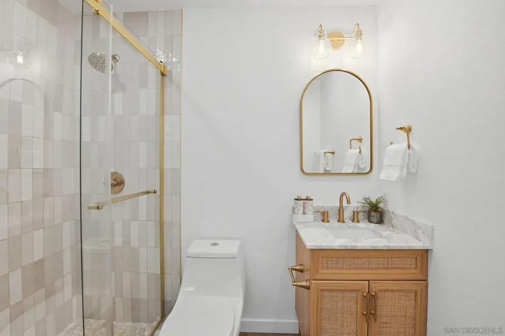 Totally remodeled, turnkey 3BR/2BA single-level home in the highly desirable 55+ community of High Country Villas in Encinitas. Bright, modern 1,056 sq ft with new luxury vinyl plank flooring, fresh interior paint, and a custom marble fireplace. Stunning updated kitchen with sleek cabinetry, natural stone countertops, and stainless appliances. Both bathrooms fully renovated with tiled showers, new vanities, and modern fixtures. Spacious primary suite plus two secondary bedrooms ideal for guests, office, or hobbies. Private patio with mountain views—perfect for morning coffee and sunset evenings. Resort-style amenities include pool/spa, 9-hole golf, clubhouse, pickleball, and walking trails with a low monthly HOA. Minutes to beaches, shopping, and dining—turnkey 55+ living at its best. Welcome home to a completely remodeled, turnkey 3-bedroom, 2-bath residence in the highly sought-after 55+ community of High Country Villas in Encinitas. This single-level home offers 1,056 sq ft of bright, modern living with thoughtful upgrades throughout. Step inside to a fresh contemporary interior featuring new luxury vinyl plank flooring, all-new paint, and a custom marble fireplace that anchors the living space. The kitchen has been fully reimagined with sleek cabinetry, natural stone countertops, and stainless steel appliances—perfect for everyday living or entertaining. Both bathrooms have been beautifully upgraded with tiled showers, new vanities, and modern fixtures. The spacious primary suite includes an updated en-suite bath and generous closet space, while two additional bedrooms offer flexibility for guests, a home office, or hobbies. Enjoy two private patios, one with mountain views—ideal for morning coffee and sunset evenings. High Country Villas delivers a relaxed, resort-style lifestyle with amenities including a pool and spa, 9-hole golf course, clubhouse, pickleball courts, and scenic walking trails—all with a low monthly HOA. Just minutes to beaches, shopping, dining, and everything coastal North County has to offer, this home pairs modern upgrades with the easygoing Encinitas lifestyle. Move-in ready 55+ living at its best.