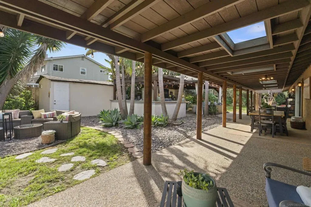 I am excited to share a rare opportunity for a beautiful single-level property located just a short walk to the beach with ADU & Fully Paid Solar system The main home features 4 bedrooms and 2.5 bathrooms, including a primary suite with a walk-in closet and ensuite bath. The interior offers a light-filled great room with an impressive fireplace, a dining area perfect for entertaining, and a kitchen complete with leathered granite counters, warm cabinetry, and a Sub-Zero refrigerator, separate laundry room with storage closets and direct access to the double garage. Outside, you will find a secure front patio with a soothing water feature and a private backyard oasis that includes a vaulted patio cover, a BBQ station, a circular conversation area, and a large TV entertainment center as well as room for children and pets to enjoy the fully fenced area. Additionally, the property includes a detached 2-bedroom, 1-bathroom unit with its own kitchen, private patio, and direct access parking—ideal for rental income or as an in-law suite. Practical amenities include a double garage, ample off-street parking, a storage shed, and RV parking with full hookups and a clean-out. Rare opportunity for this single level 4BR/2.5BA home with separate 2BR/1BA detached ADU Only a short walk to the beach! THis property has ample off street parking, RV Parking with hookups and cleanout plus attached garage for the main residence. You’ll find tranquility once you enter the gated front patio area with soothing water feature. Enter the home to the great room with fireplace and dining area that is an entertainers delight! The kitchen features lovely theather granite counters and warm cabinetry and sub zero refrigerator while opening to the family room. The Primary bedroom suite offers walk in closet, ensuite bath with large shower and dual sink vanity and direct access to the back yard. The other bedrooms are separate from the primary bedroom area. The back yard is a private oasis with cozy circular conversation area, BBQ station and Large TV entertainment area, with vaulted patio cover. The ADU is perfect for inlaw quarters or rental income featuring 2 bedrooms/1 bath, kitchen area and access to direct parking and private patio area. There iare 3 sheds for strorage. AND..off street parking for at least 8 autos