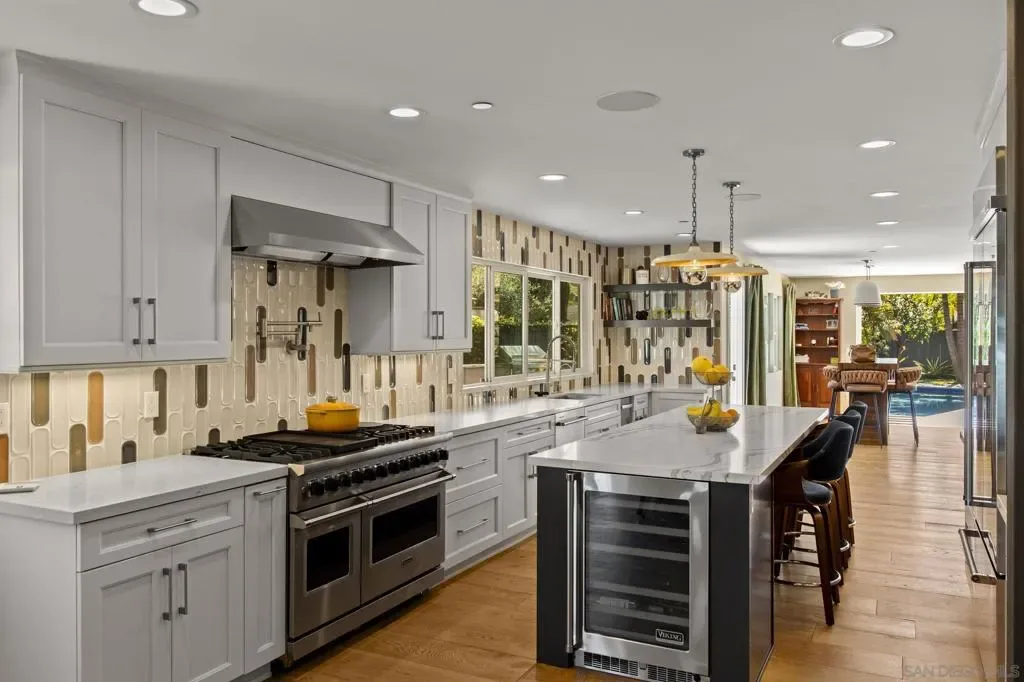 Amazing home W of 5. Rebuilt in 2019. Stunning chef’s kitchen opens to a large family room with 17’ doors that connect indoor/outdoor living. Thoughtful design details throughout, including custom lighting, designer wallpaper, and a beautifully updated fireplace. The luxurious primary suite has been completely remodeled. The yard is a tropical retreat designed for year-round entertaining, complete with pool/spa, cabana, fire pit, built-in BBQ, covered patio with TV and lounge area & more. Additional features include high-end landscape lighting, two EV chargers in the garage, a 14.2 kW solar system, and two Tesla PowerWall units. This is more than a home—it’s a lifestyle. In the heart of Leucadia—renowned for its vibrant coastal lifestyle—this exceptional Craftsman home sits west of the 5 on a quiet cul-de-sac, just moments from beaches, shops, and restaurants. Rebuilt in 2019 and continually enhanced since, the residence blends uncompromising quality with comfort, efficiency, and modern living. Spanning 3,992 sq ft, the flexible floor plan includes 5 bedrooms, an office, bonus space, and 5.5 bathrooms. The stunning chef’s kitchen features high-end appliances, quartz countertops, a spacious walk-in pantry, wine fridge, custom tile backsplash, and opens to a large family room with dramatic 17-foot pocket doors that seamlessly connect indoor and outdoor living. Thoughtful design details are found throughout, including custom lighting, designer wallpaper, and a beautifully updated fireplace with custom tile and a walnut mantle. The luxurious primary suite has been completely remodeled with a new soaking tub, custom tile, vanity, modern lighting, LED mirrors, heated bidet toilet, and a professionally designed closet. The upstairs features vaulted ceilings. The backyard is a private tropical retreat designed for year-round entertaining—complete with a pool and spa, cabana, fire pit, built-in BBQ, covered patio with TV and lounge area, sport court space, and versatile storage shed. Additional features include high-end landscape lighting, upgraded electrical panel, two EV chargers in the garage, a 14.2 kW solar system, and two Tesla PowerWall units. Walk or bike to the beach and experience the best of Leucadia living. This is more than a home—it’s a lifestyle.