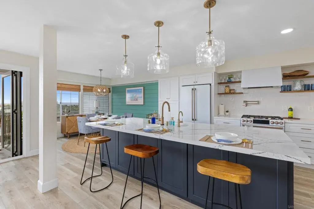 Beautifully renovated 3BR/2.5BA Cape Cod–style townhome in the heart of Leucadia with ocean views. The open-concept main level features cantina doors, abundant natural light, and an updated kitchen with high-end appliances. Nearly every room offers ocean outlooks. Upstairs, the primary suite offers ocean views and en-suite bath. Two additional bedrooms and upgraded bathroom provide comfort for family or guests. Enjoy two private outdoor spaces – a furnished partially covered patio and an ocean-view balcony off the living room. For added convenience there is full-size laundry and a 220 EV charger in the garage. Just a short walk to the beach, Orpheus Park, and Leucadia’s cafés, restaurants, wine bars, boutiques, and weekly farmers market. Coastal living made easy.