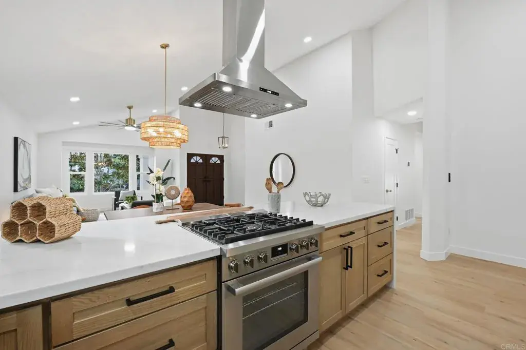 Beautifully transformed Spanish single story 3-bedroom, 2 bath executive home thoughtfully re-imagined throughout. The stunning open-concept kitchen features brand new cabinets, Upgraded Bosch Appliances and an oversized island with waterfall edges, perfect for entertaining and flows seamlessly into the main living space beneath soaring vaulted ceilings. A dramatic 16-foot bi-fold door opens to a private, low-maintenance backyard with inviting gas firepit, creating exceptional indoor-outdoor living, covered by a tranquil trellis. Upgraded luxury vinyl plank flooring runs throughout the home. Primary suite offers vaulted ceilings, double vanity, and another 12-foot bi-fold door, walk-in closet and a completely remodeled spa-inspired bathroom. Both secondary bedrooms include sliding doors that open to a peaceful side yard retreat. All bathrooms have been fully upgraded with brand-new cabinetry and finishes. On a private corner lot at the end of the street with only one neighboring home, this property backs directly to Natural Trails Park, offering privacy and scenic surrounding. Located close to the Pacific Ocean and world-famous beaches, in one of the most desirable neighborhoods in the area. This is a rare opportunity you don’t want to miss.
