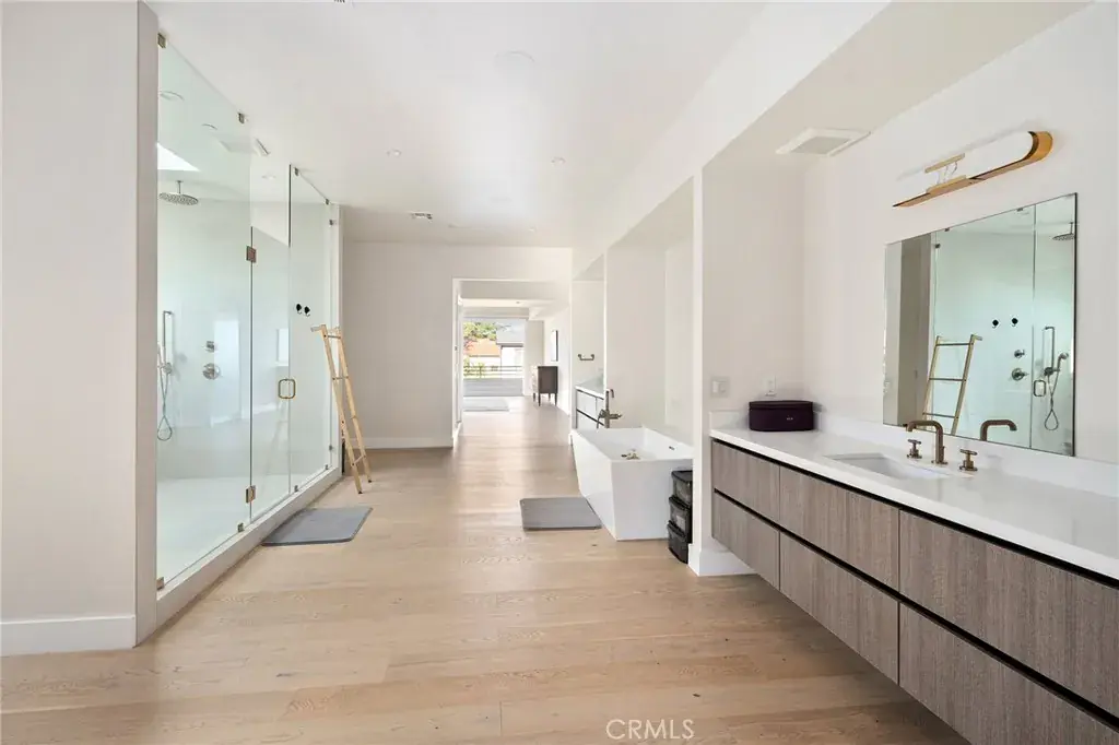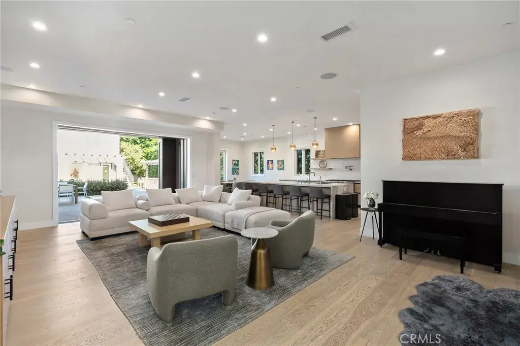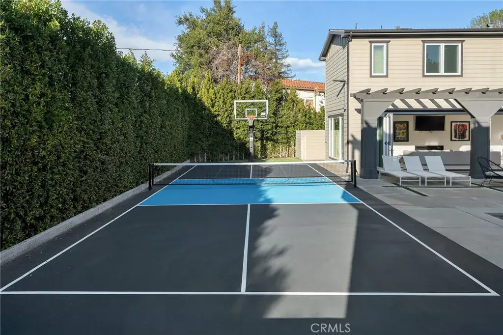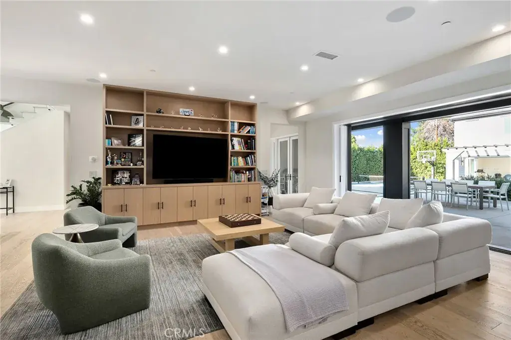 Hidden behind private gates on a sprawling nearly half acre lot in the prestigious Royal Oaks enclave of Encino, this newer construction estate consists of a 5-bed, 7-bath main home and two-story guest/pool house. A dramatic double-height foyer sets the tone for the open-concept layout ahead, featuring chic designer finishes, lofty ceilings and natural light that floods the home from all angles. At the heart of the home, the designer chef’s kitchen boasts Thermador Professional Series appliances, leathered stone countertops, a butler’s pantry and breakfast nook. The kitchen flows effortlessly into a spacious family room, while a formal living and dining room offer a refined entertaining space. A dedicated media room rounds out the thoughtfully designed main level. Upstairs, you’ll find four generously sized bedrooms, including a luxurious primary suite that’s highlighted by a large walk-in closet and spa-inspired bath with a soaking tub, rainfall shower and dual vanities. Enveloped by lush, mature landscaping, the resort-style backyard includes a sparkling pool and spa, outdoor kitchen cabana, sports court, built-in fire pit, expansive lounge areas and a separate grassy yard with a mature orange tree. The impressive two-story guest/pool house offers exceptional versatility. The lower level features a living room with a catering kitchen, while the upper level functions as a fully private 1-bed, 1-bath guest suite complete with its own living room and full kitchen. Additional amenities include a glass-enclosed wine room, dedicated laundry room, smart home technology, and a gated circular driveway leading to a three-car garage. Ideally located in one of Encino’s most sought-after, Westside-accessible neighborhoods, this extraordinary estate presents a rare opportunity to enjoy luxury, privacy, and convenience all in one.