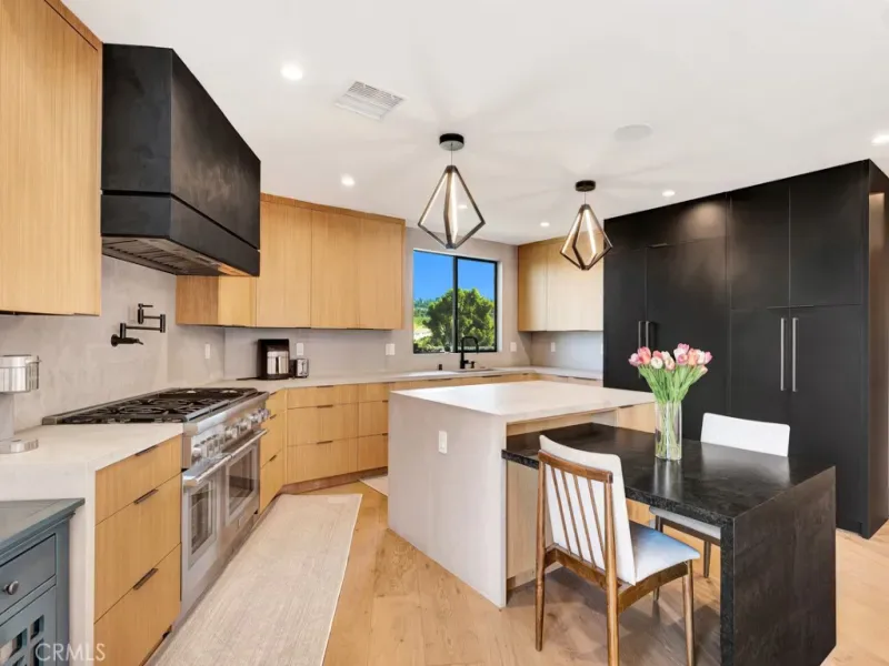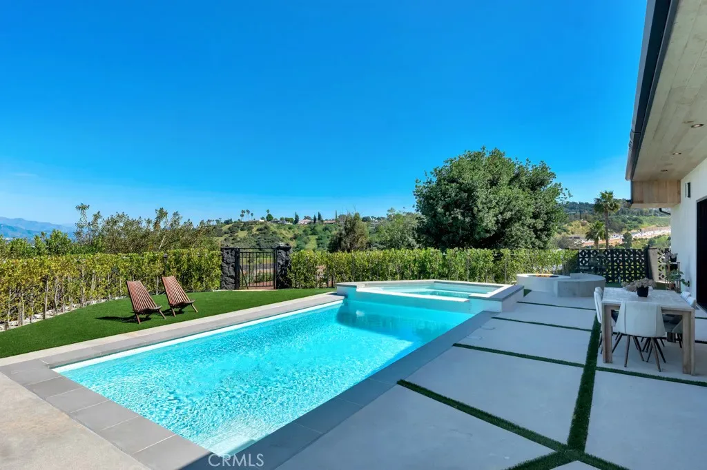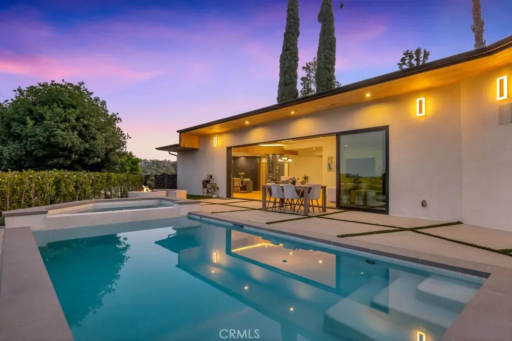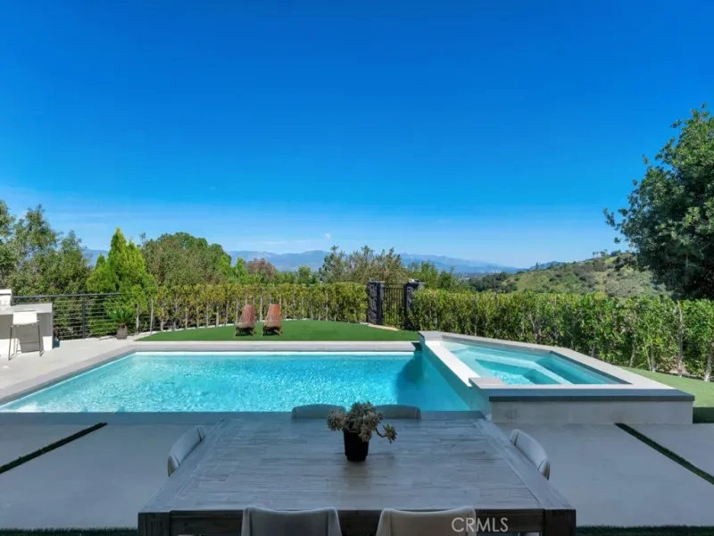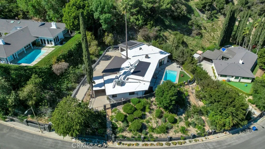 Rare Opportunity: The Ultimate View Estate in Encino! Experience the perfect harmony of Mid-Century soul and modern luxury in this single-story masterpiece. Located South of Ventura Blvd in the prestigious Royal Oaks enclave and the award-winning Lanai School District, this estate is a true hidden treasure. Your journey begins at the end of a long, gated driveway, offering a peaceful and private entrance with plenty of parking, a two-car garage, and a covered carport. Inside, this expansive home features 5 bedrooms and 4.5 baths, thoughtfully designed with comfort and functionality in mind. The primary suite offers a walk-in closet and a beautifully designed bathroom with double vanity sinks and a separate shower and tub. The living room within a bright and open floor plan is a beautiful showcase of modern design, where high ceilings and large stacking glass doors frame breathtaking, wide-open views of the valley. For the cook, the Gourmet Chef’s kitchen offers top-tier materials, plenty of counter space, and a stunning glass wine cellar—perfect for a modern lifestyle where luxury meets everyday use. Your clients will love the “Zero Utility Bill” potential with the fully paid-off solar system and the peace of mind from the newly coated roof. Every detail is built for comfort, including brand-new motorized blinds that come with a lifetime warranty. The backyard is a private escape, featuring a sparkling swimming pool and a raised hot tub made for relaxing while taking in the views. Surrounded by a large patio, it is the perfect spot for enjoying the sun and hosting outdoor dinners under the stars.