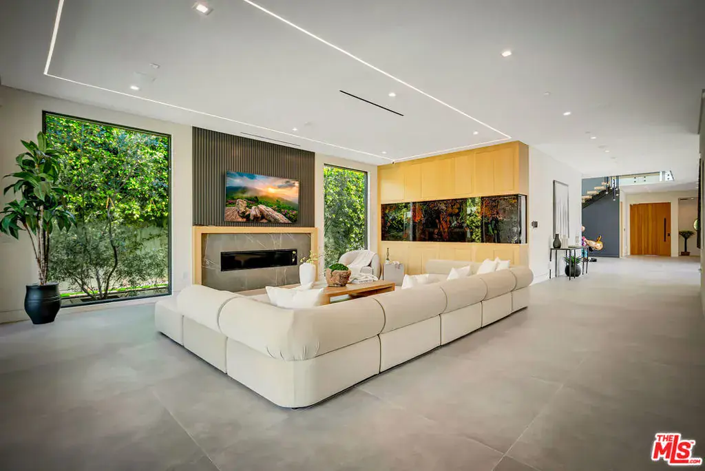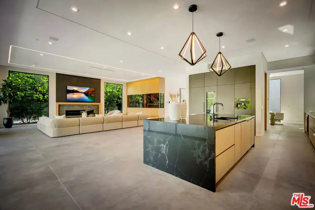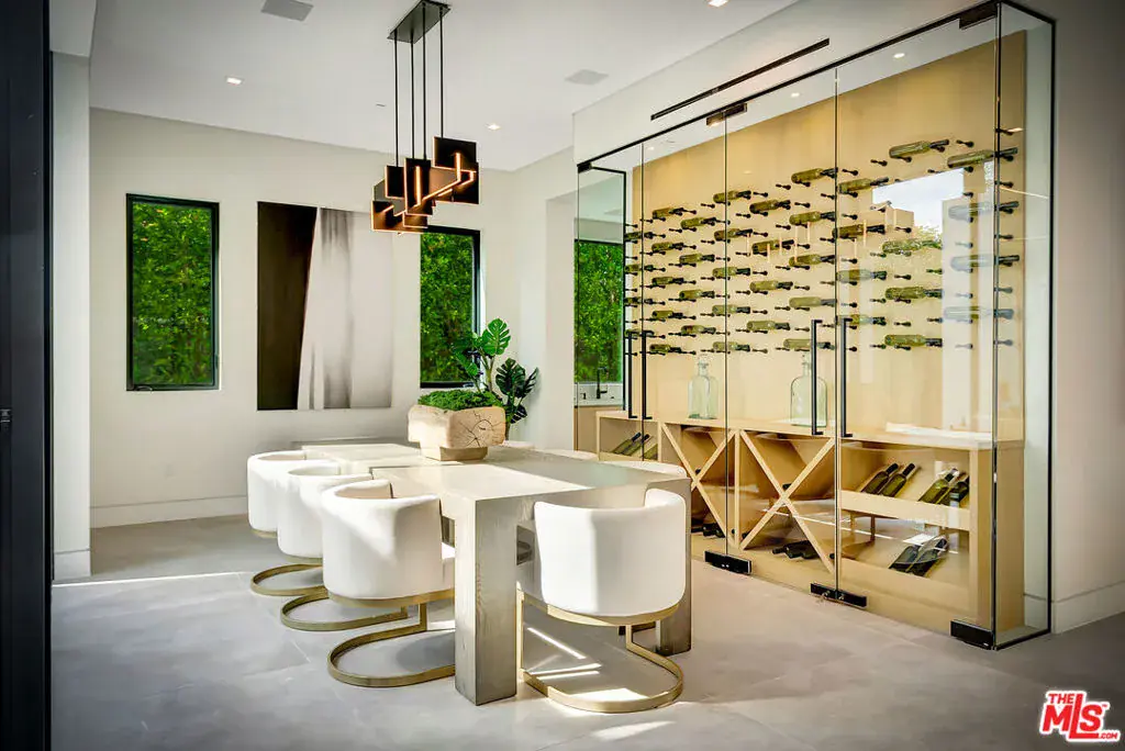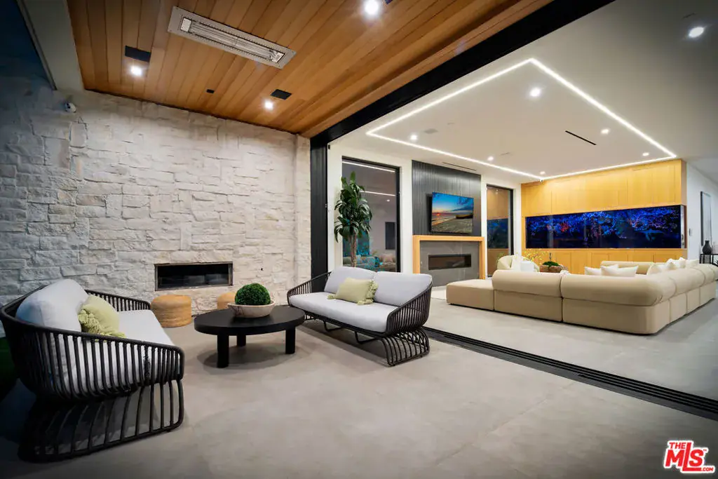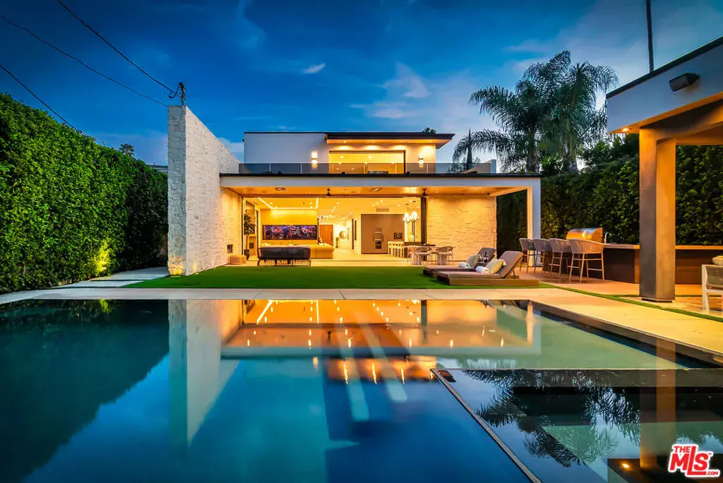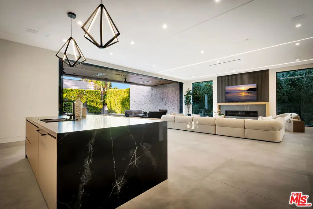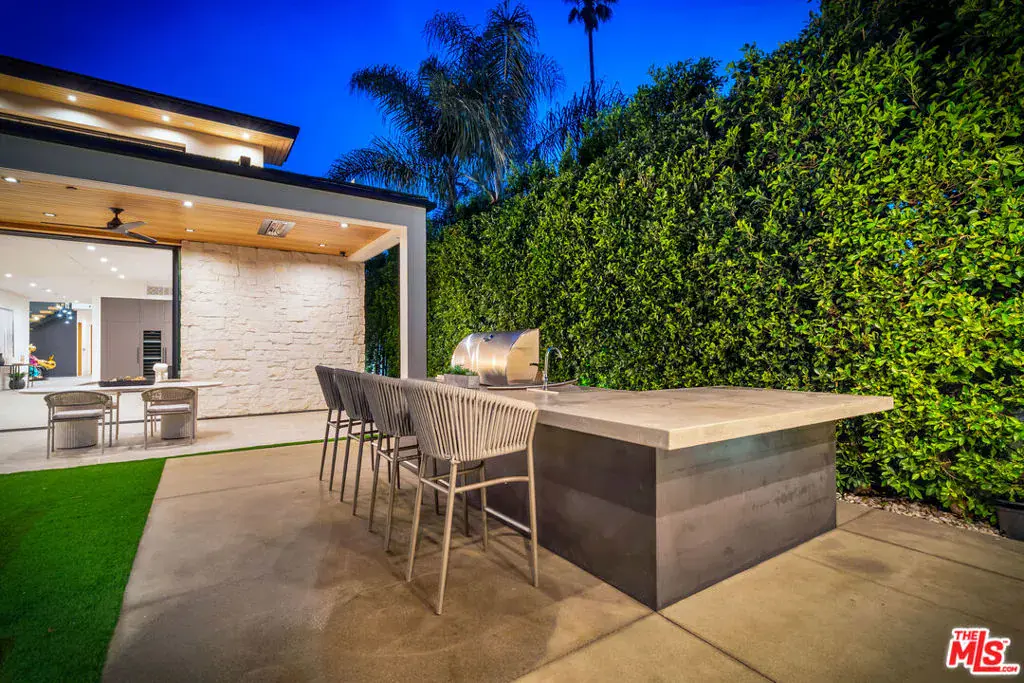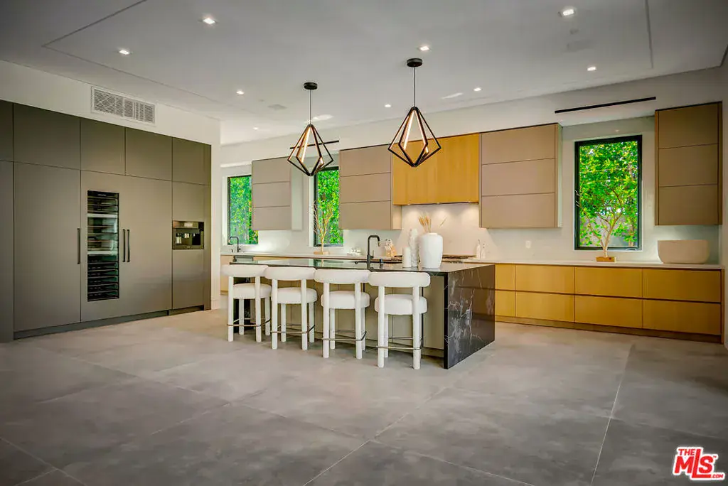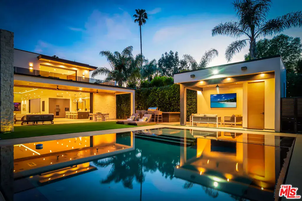 Sleek, modern newer construction in the heart of Encino, located within the sought-after Hesby Oaks School District and just moments from Ventura Blvd. This gated and private residence offers over 7,000 square feet of thoughtfully designed living space on a 12,000+ square foot lot and is equipped with solar panels for added energy efficiency. The home features 6 bedrooms, 7.5 bathrooms, and a well-designed open floor plan that connects the main living areas, creating a functional layout ideal for entertaining and comfortable daily use. The oversized kitchen is equipped with high-end appliances, custom cabinetry, generous counter space, and a large center island that anchors the home. Additional highlights include a sports court, private theater, a built-in aquarium, and a striking wine display feature that adds visual interest to the interior. Large sliding doors open to a spacious covered patio, extending the living space outdoors. The backyard is designed for entertaining, complete with a fire pit, built-in BBQ, pool and spa, pool cabana with an outdoor bathroom. Offering scale, privacy, and a prime location in one of Encino’s most desirable neighborhoods, this property combines modern design with practical functionality just minutes from Ventura Blvd’s dining and shopping.