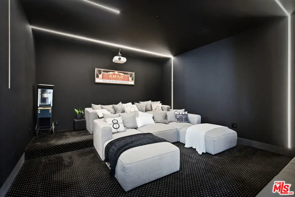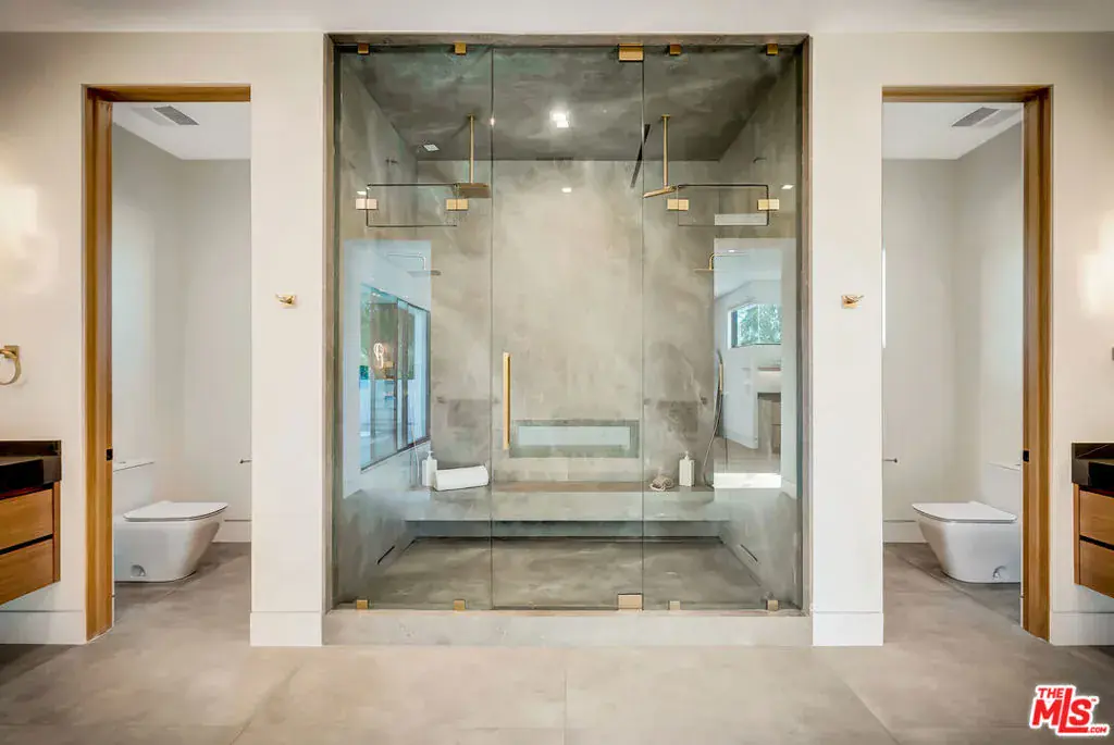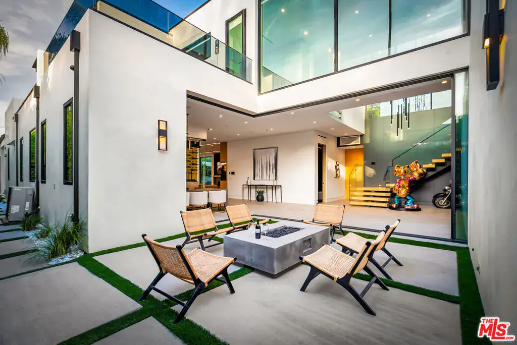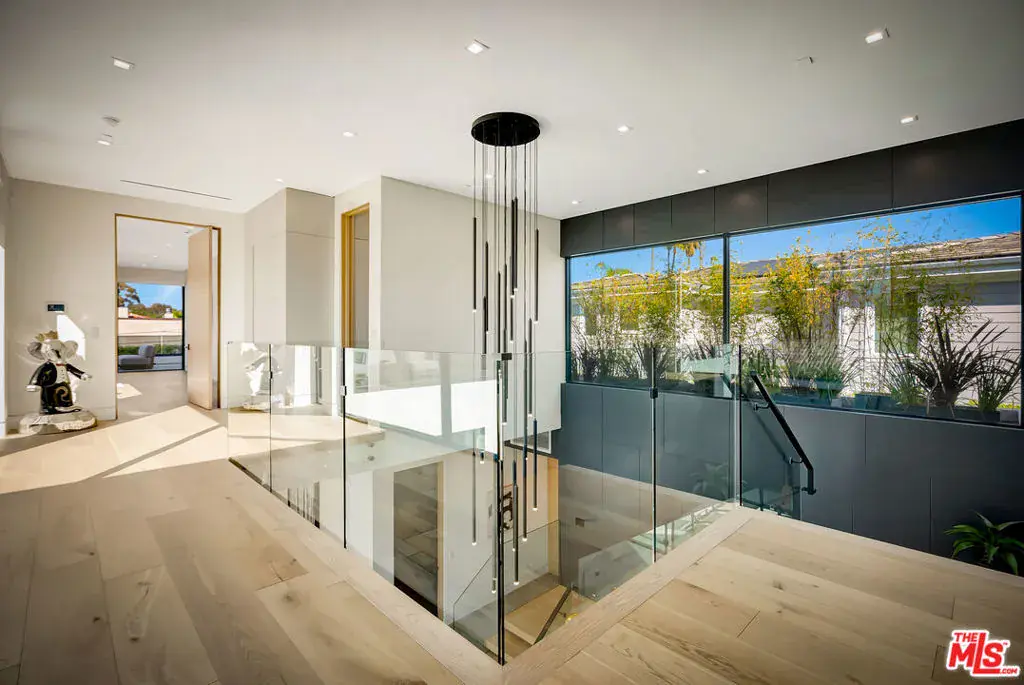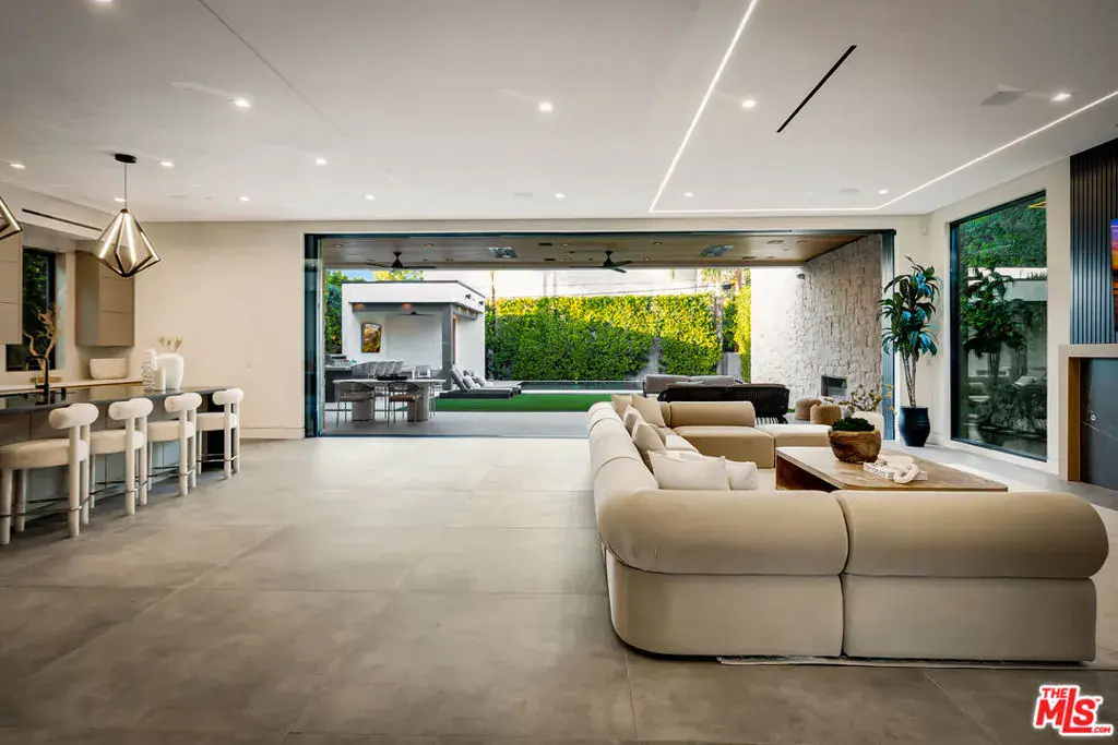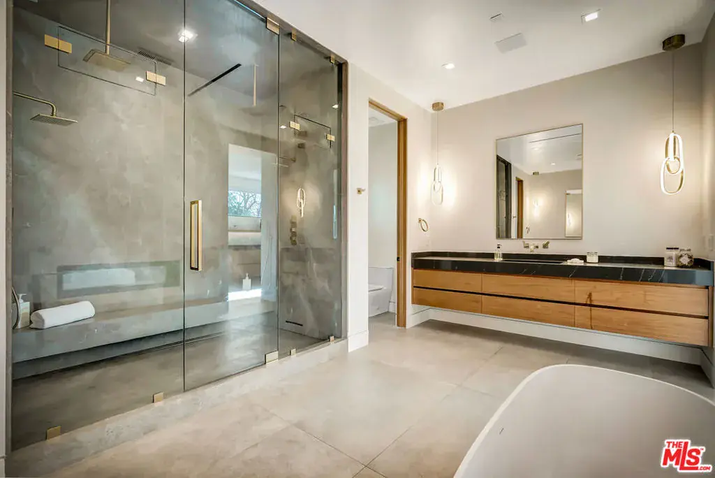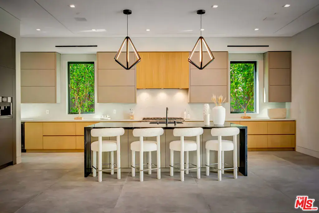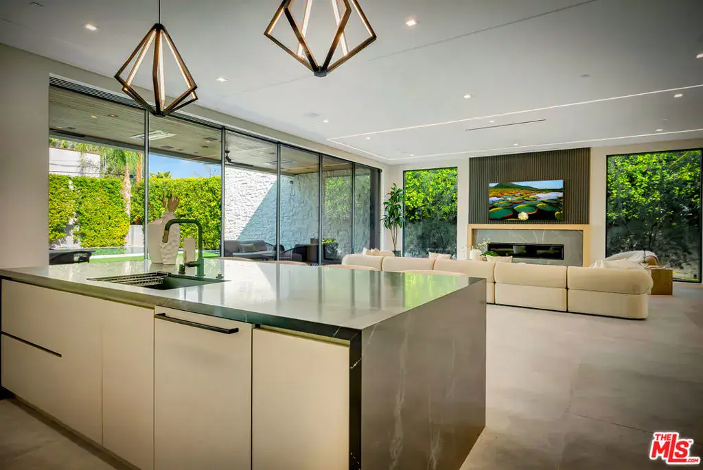 Sleek, modern newer construction in the heart of Encino, located within the sought-after Hesby Oaks School District and just moments from Ventura Blvd. This gated and private residence offers over 7,000 square feet of thoughtfully designed living space on a 12,000+ square foot lot and is equipped with solar panels for added energy efficiency. The home features 6 bedrooms, 7.5 bathrooms, and a well-designed open floor plan that connects the main living areas, creating a functional layout ideal for entertaining and comfortable daily use. The oversized kitchen is equipped with high-end appliances, custom cabinetry, generous counter space, and a large center island that anchors the home. Additional highlights include a sports court, private theater, a built-in aquarium, and a striking wine display feature that adds visual interest to the interior. Large sliding doors open to a spacious covered patio, extending the living space outdoors. The backyard is designed for entertaining, complete with a fire pit, built-in BBQ, pool and spa, pool cabana with an outdoor bathroom. Offering scale, privacy, and a prime location in one of Encino’s most desirable neighborhoods, this property combines modern design with practical functionality just minutes from Ventura Blvd’s dining and shopping.
