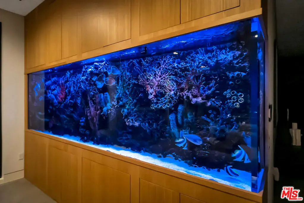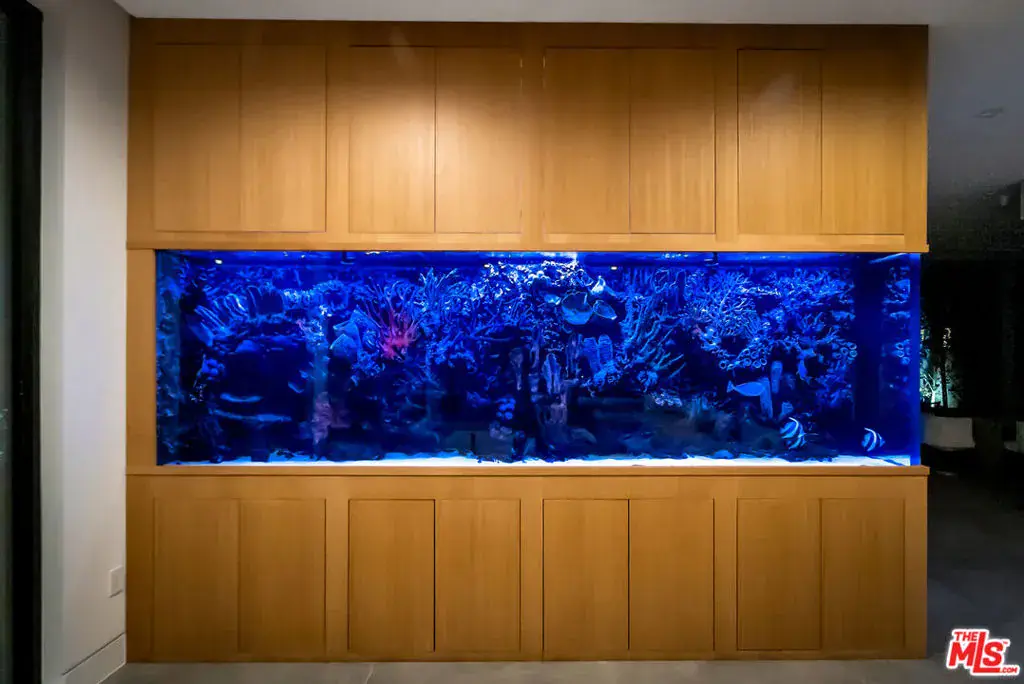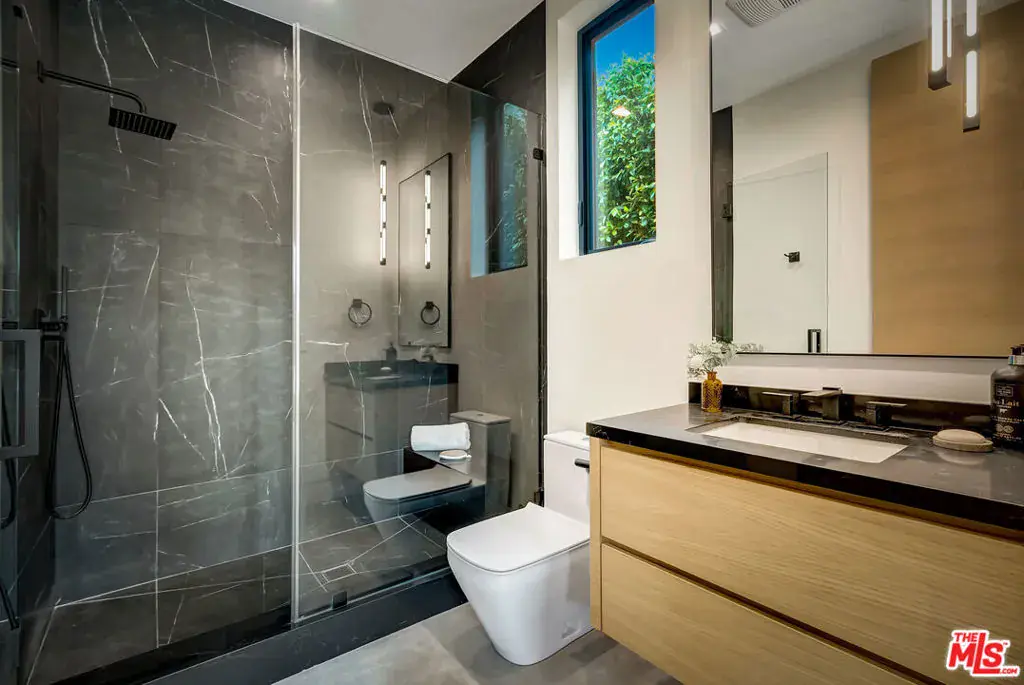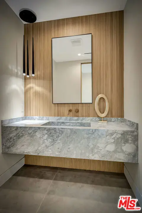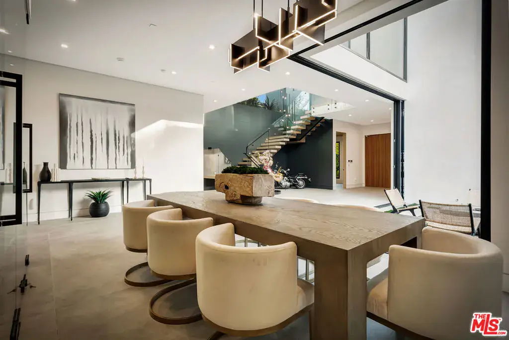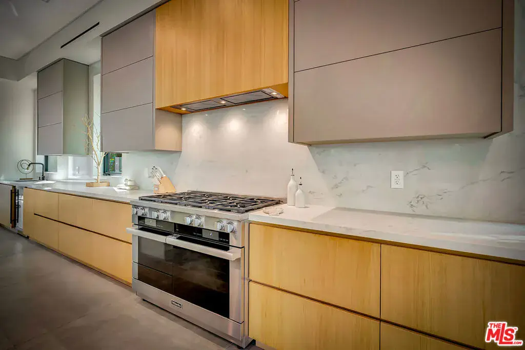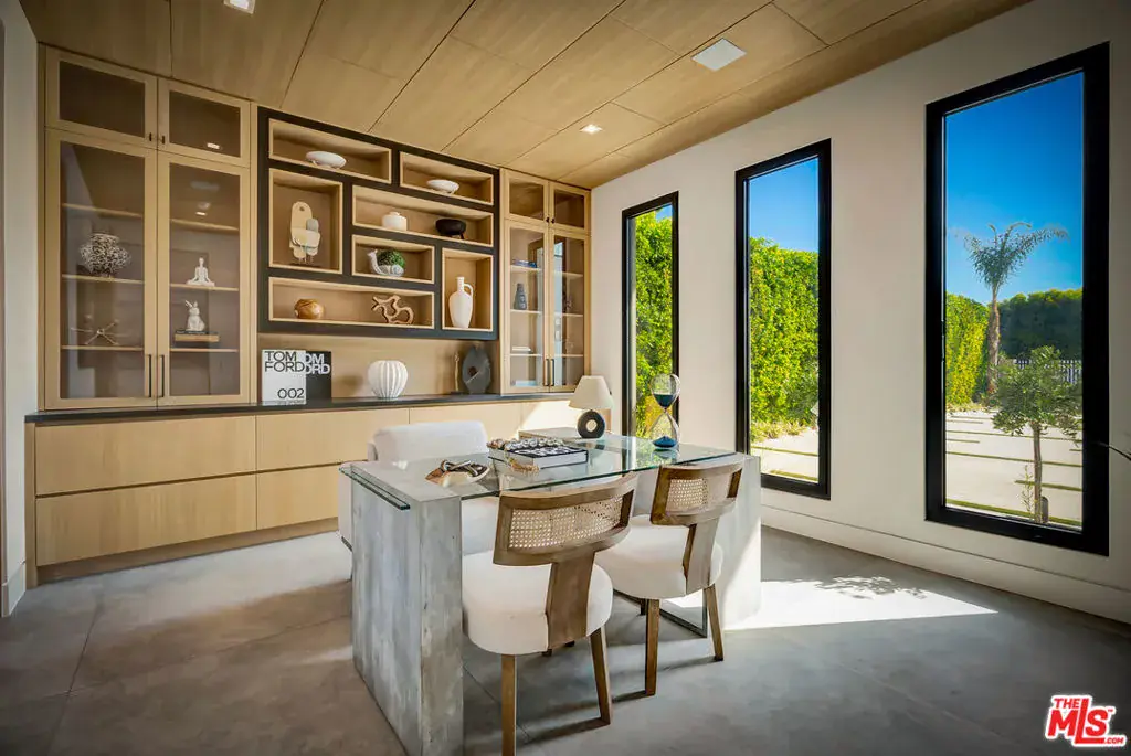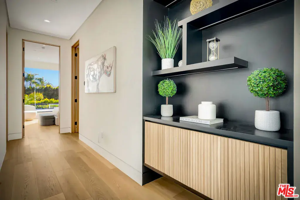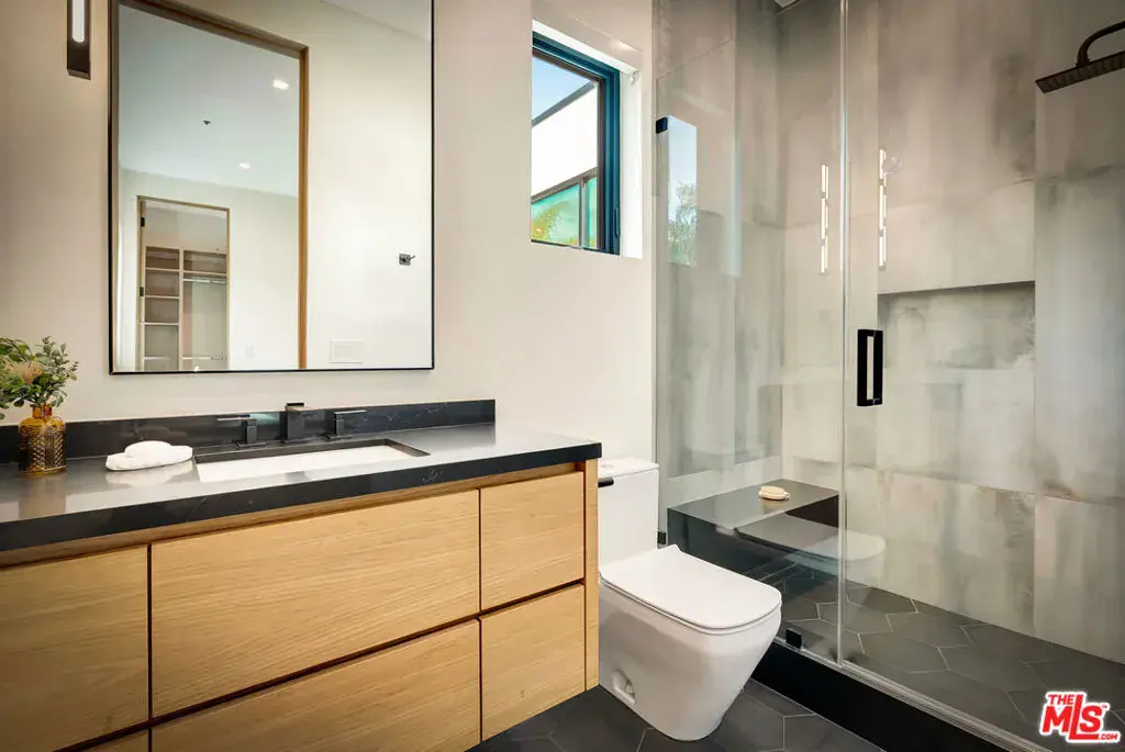 Sleek, modern newer construction in the heart of Encino, located within the sought-after Hesby Oaks School District and just moments from Ventura Blvd. This gated and private residence offers over 7,000 square feet of thoughtfully designed living space on a 12,000+ square foot lot and is equipped with solar panels for added energy efficiency. The home features 6 bedrooms, 7.5 bathrooms, and a well-designed open floor plan that connects the main living areas, creating a functional layout ideal for entertaining and comfortable daily use. The oversized kitchen is equipped with high-end appliances, custom cabinetry, generous counter space, and a large center island that anchors the home. Additional highlights include a sports court, private theater, a built-in aquarium, and a striking wine display feature that adds visual interest to the interior. Large sliding doors open to a spacious covered patio, extending the living space outdoors. The backyard is designed for entertaining, complete with a fire pit, built-in BBQ, pool and spa, pool cabana with an outdoor bathroom. Offering scale, privacy, and a prime location in one of Encino’s most desirable neighborhoods, this property combines modern design with practical functionality just minutes from Ventura Blvd’s dining and shopping.