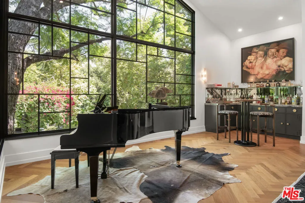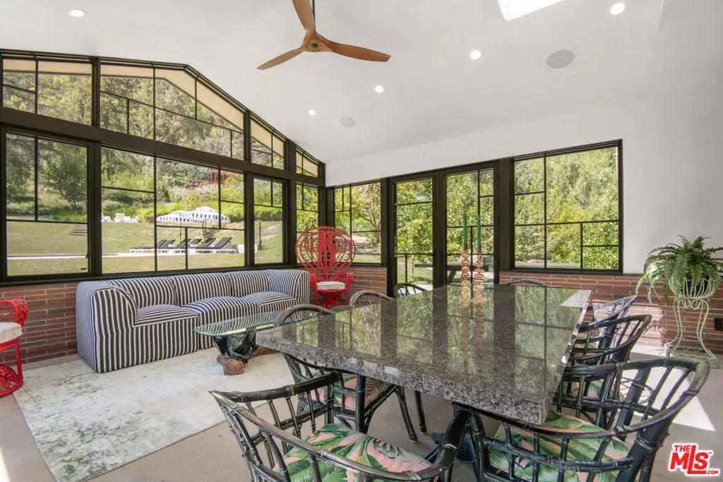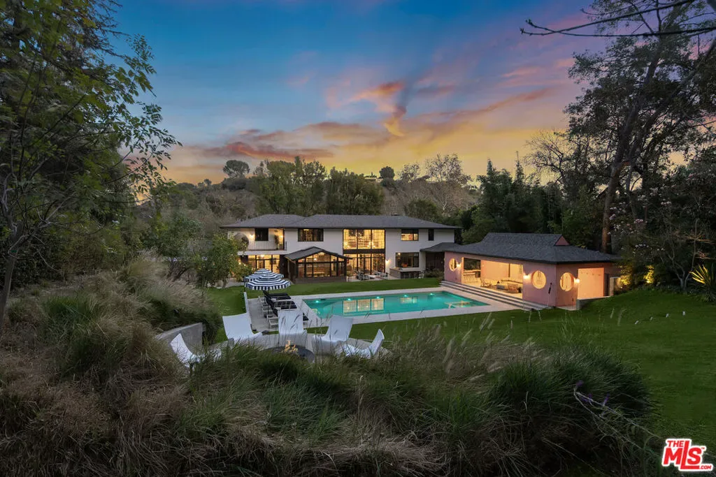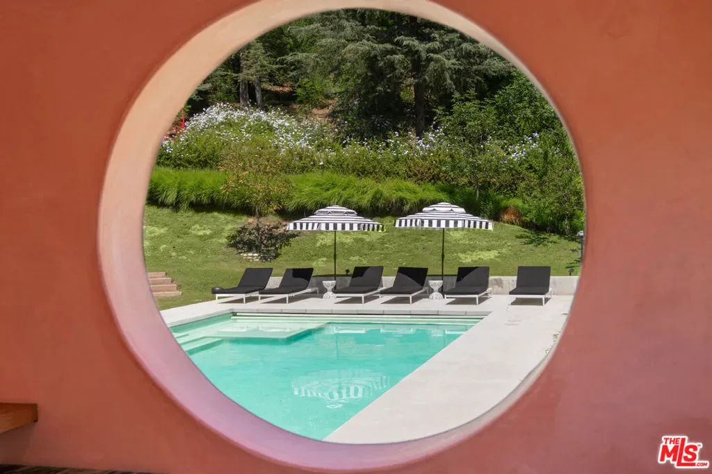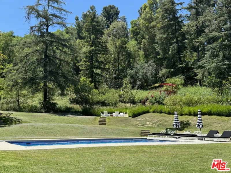 Introducing The Eden. This extraordinary, one-of-a-kind estate where refined elegance, artistic vision, and complete privacy converge in the heart of Encino’s coveted Royal Oaks. Privately gated and set well back from the street, this rare 2.6+ acre sanctuary unfolds as a lush botanical retreat, surrounded by mature trees and impeccably curated gardens that create a serene, resort-like atmosphere. The residence is a masterful fusion of contemporary design and bespoke character, highlighted by striking custom Mondrian-inspired windows that bathe the interiors in natural light while framing sweeping views of the verdant, park-like grounds. Vintage 1940s Italian chandeliers cast a warm glow over the grand great room, anchored by a dramatic custom Ceppo marble fireplace mantle that exudes timeless sophistication. Designed for both everyday living and elevated entertaining, the chef’s kitchen is a work of art featuring Poggenpohl custom cabinetry, a professional refrigerator and freezer, an 8-burner range with griddle, three ovens, a sculptural hammered-steel range hood, an expansive center island, and sumptuous leathered quartzite countertops. A museum-quality, fully enclosed sunroom offers the perfect setting for year-round al fresco dining. The primary suite is a private haven of understated luxury, complete with a dedicated sitting area, dual walk-in closets, and spa-like dual bathrooms. Her retreat showcases rose quartz countertops and vintage brass lighting, while his sanctuary offers an oversized steam shower and soaking tub for ultimate relaxation. Outdoors, the estate truly shines as an entertainer’s paradise. The expansive grounds feature a resort-style swimmer’s pool and spa, private hiking trails, a grove of mature fruit trees, a fully enclosed dog run, and an impressive cabana equipped with a BBQ kitchen, wet bar, fireplace, and outdoor shower perfect for hosting unforgettable gatherings. World-class amenities abound, including a secure safe room with ballistic door, state-of-the-art movie theater, fully equipped gym, pristine sauna and steam room, game room, 300-bottle wine storage, advanced security and sound systems, formal office, and a detached guest house with a kitchenette and a balcony overlooking a dramatic 100-foot rock-lined stream and water feature. Completing the property is a three-car garage with abundant storage and a workbench, along with extensive additional parking. Meticulously engineered with state-of-the-art retaining walls, drainage systems, and infrastructure, every element of The Eden reflects uncompromising attention to detail. More than a residence, this is a singular masterpiece testament to inspired design, exceptional craftsmanship, and a truly unparalleled lifestyle.