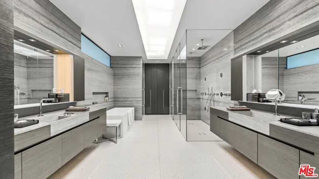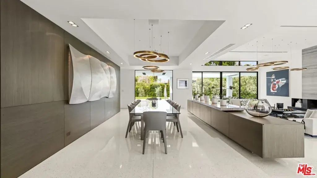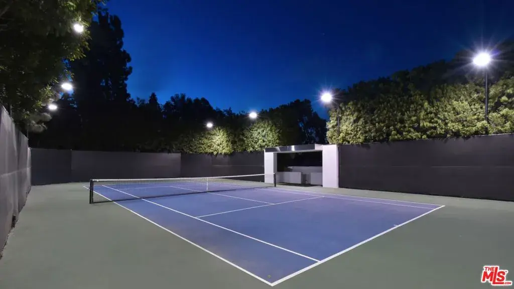 Extraordinary single-story Tennis Court estate on one flat acre in prime Royal Oaks. This newer build contemporary masterpiece is incredibly sleek and sexy-it truly is Trousdale in Encino. Custom architectural design has pristine Terrazzo floors throughout. Walled, gated, and surrounded by mature hedging, the home is set deeply off the street for maximum privacy and security. Perfect for sophisticated entertaining. Huge motor court for the car collector houses 8 cars, plus multiple additional spaces for guests. The gorgeous living room seamlessly flows to the chef’s kitchen with top-of-the-line appliances adjacent to an impressive dining room. Floor-to-ceiling glass Fleetwood doors which wrap around the sweeping property allow you to fully open and live your dream indoor-outdoor lifestyle. The main bedroom feels like the ultimate 5-star hotel suite. Gorgeous dual walk -in closets, black-out shades, radiant heated flooring in a bathroom flooded with natural light. A great media room, a voluminous wine storage room, and the separate guest wing accommodate a killer office and gym. The outdoor kitchen with covered patio features heaters and disappearing glass doors that make the entire property flow.