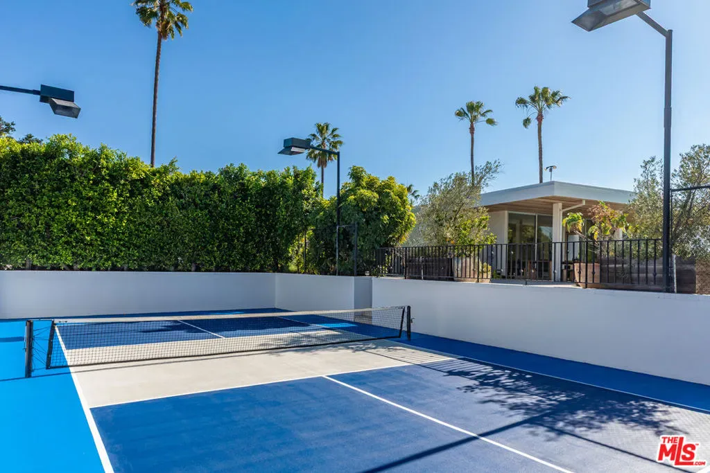 This extraordinary mid-century modern retreat is a masterclass in architectural intention, where soaring ceilings, walls of glass and a seamless connection to the outdoors converge to frame sweeping mountain and valley views. A dramatic entry ushers you into generous, light-drenched living spaces conceived for both quiet daily life and effortless entertaining at scale. The oversized family room anchors the social heart of the home, all opening gracefully to the surrounding landscape.The kitchen is thoughtfully appointed for the serious host, with a sun-washed breakfast area that invites lingering long after the meal is done.Privately positioned and deliberately set apart, the primary suite is a sanctuary in every sense, tranquil views, three walk-in closets, and a dedicated dressing area. The spa bath delivers on every expectation: soaking tub and striking Apparatus Studio fixtures that elevate the everyday into the exceptional. Outside, the grounds are as considered as the interiors, a private pool, spa, sauna, cold plunge and pickleball/sports court, all unfolding against a backdrop of natural beauty designed for year-round enjoyment.Primarily single-level living with lower-level garage access and an in-law suite with separate entrance. Gated entry with generous parking throughout. This is a rare convergence of scale, privacy and enduring design, set in one of the Valley’s most coveted addresses.