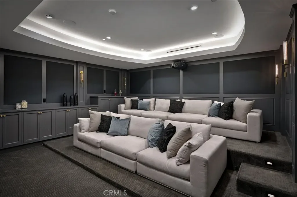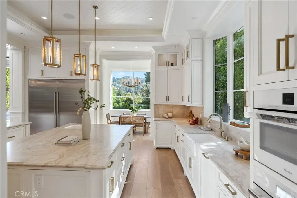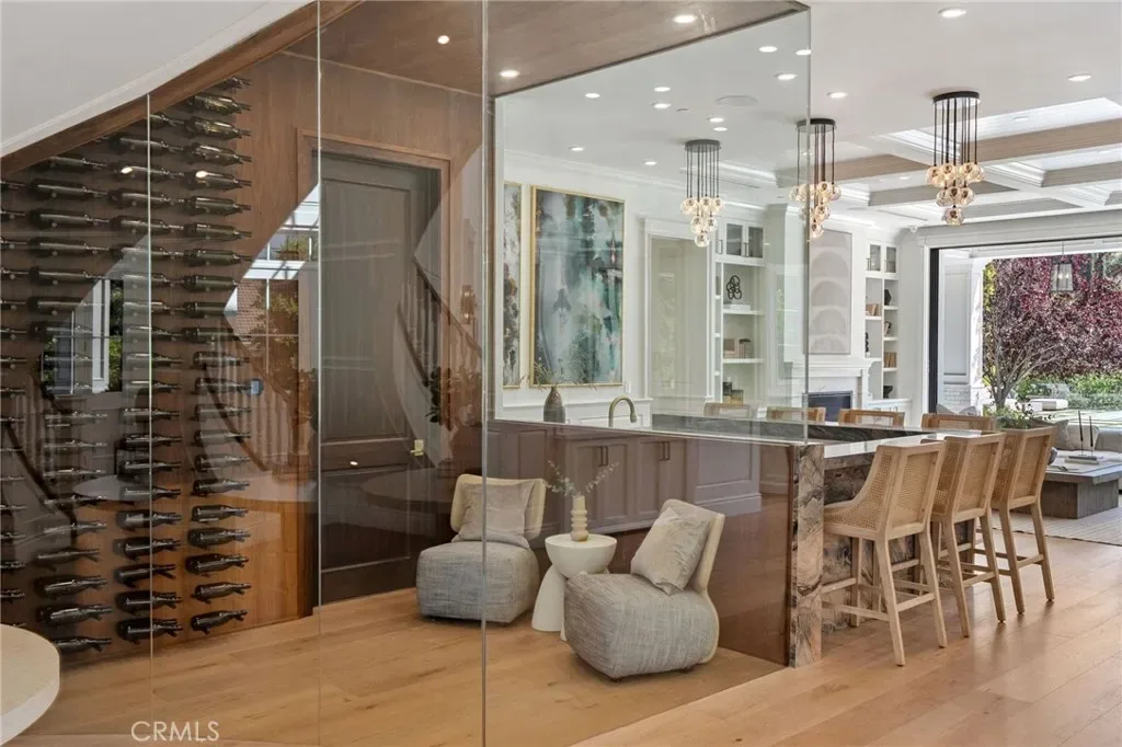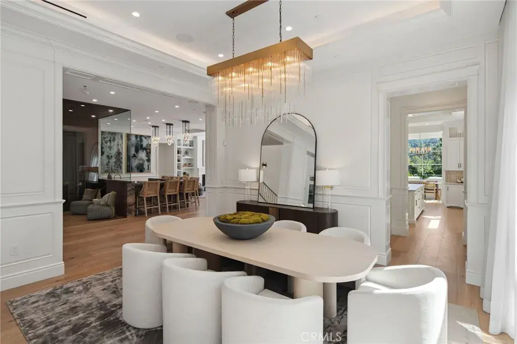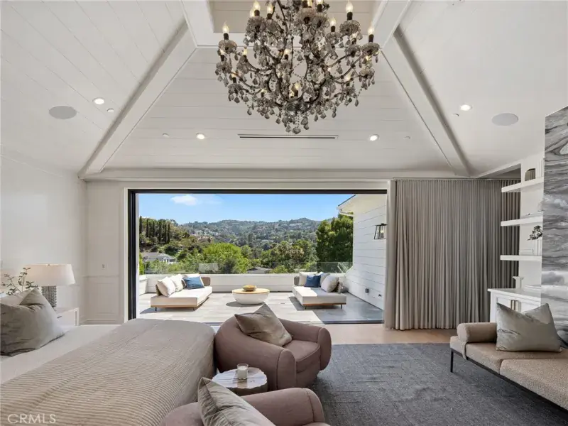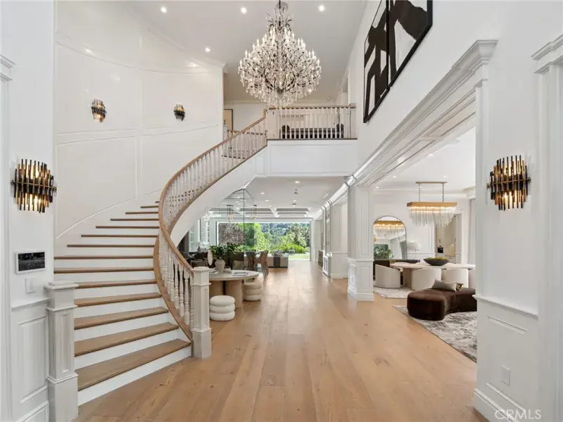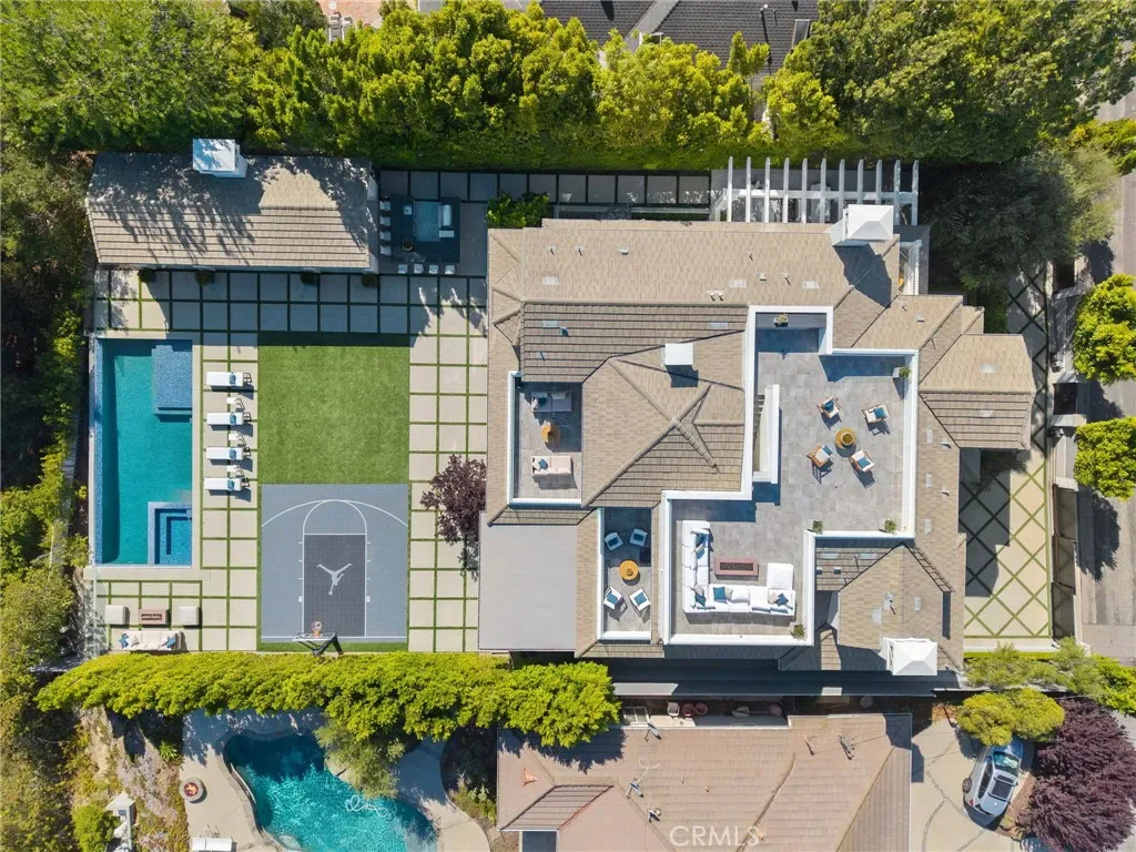 Tucked away in the hills of Encino on a peaceful cul-de-sac, this architectural tour de force effortlessly combines timeless elegance with modern luxury and sweeping panoramic views. Behind grand double doors, an impressive foyer welcomes you with soaring ceilings and a dramatic spiral staircase, setting the tone for the home’s sophistication and scale. The expansive open-concept main level is designed for both lavish entertaining and comfortable daily living, featuring a seamless formal living and dining area, a stylish family room with a sleek bar, a temperature-controlled wine cellar and dual pocket glass doors that open at the touch of a button offering a true indoor-outdoor lifestyle. At the heart of the home is a gourmet chef’s kitchen, outfitted with top-of-the-line appliances, double islands, a sunlit breakfast nook and a well-appointed butler’s pantry. Upstairs, you’ll find three ensuite bedrooms and an opulent primary suite complete with dual spa-like bathrooms, a custom walk-in wardrobe and a pocket glass door opening to a large private balcony overlooking the backyard oasis. The lower level is designed for pure indulgence, featuring a glass-enclosed office, billiards lounge, plush home theater, serene massage room with a sauna and an additional patio with direct access to the backyard. Surrounded by mature hedges for added privacy, the resort-style backyard offers a sparkling infinity-edge pool with a large spa and baja shelf, a 600 sq ft cabana, an outdoor kitchen with bar seating and a sports court. Crowning the estate is a showstopping 1,000+ sf rooftop deck with commanding views of the Valley perfect for sunset cocktails or stargazing. Additional features include two main-level ensuite bedrooms, dual laundry rooms, mudroom, elevator, soaring ceilings, Control4 smart home automation, a gated driveway and a three-car garage. Ideally located south of the Boulevard within the coveted Lanai Road School District and just minutes from the Westside, the Valley and world-class amenities.