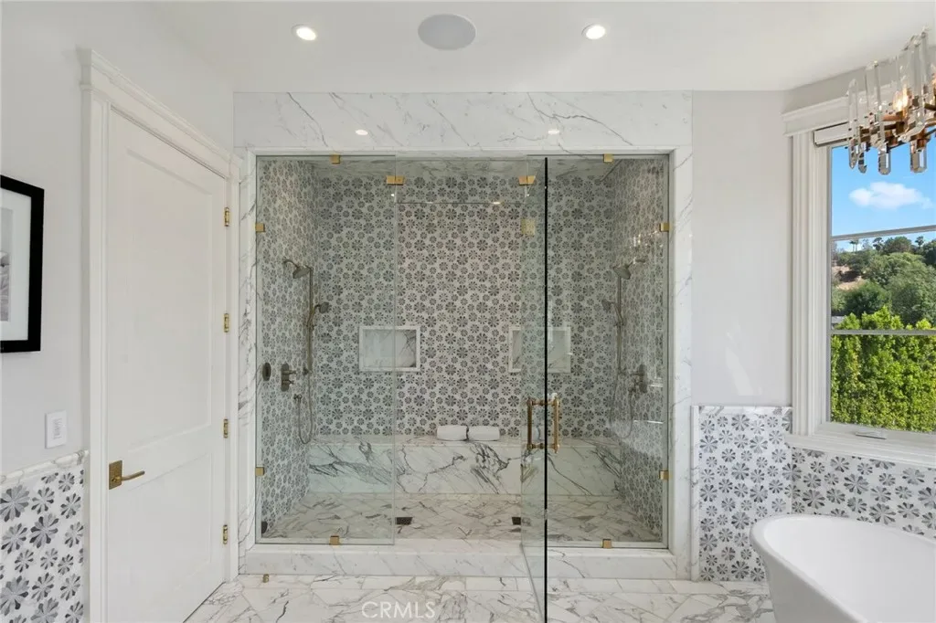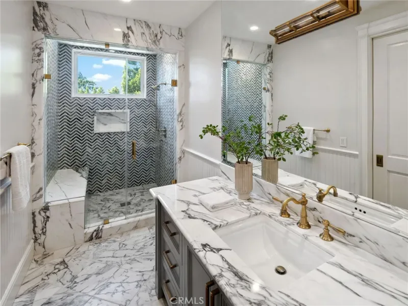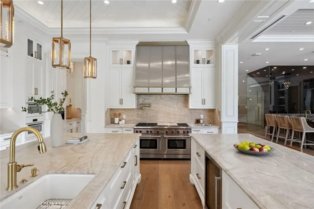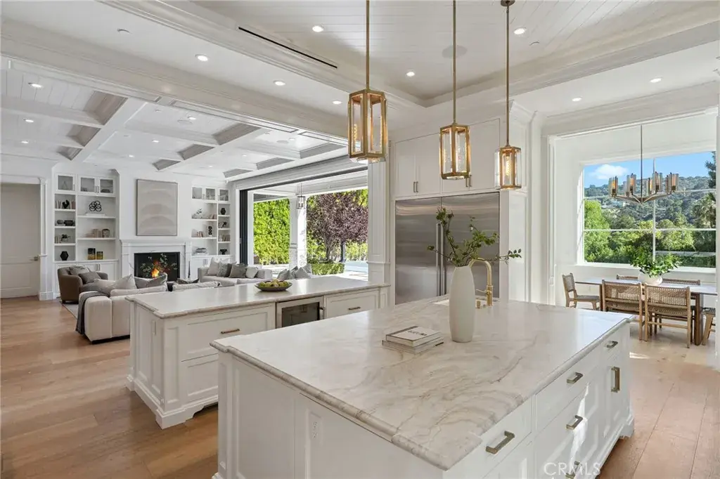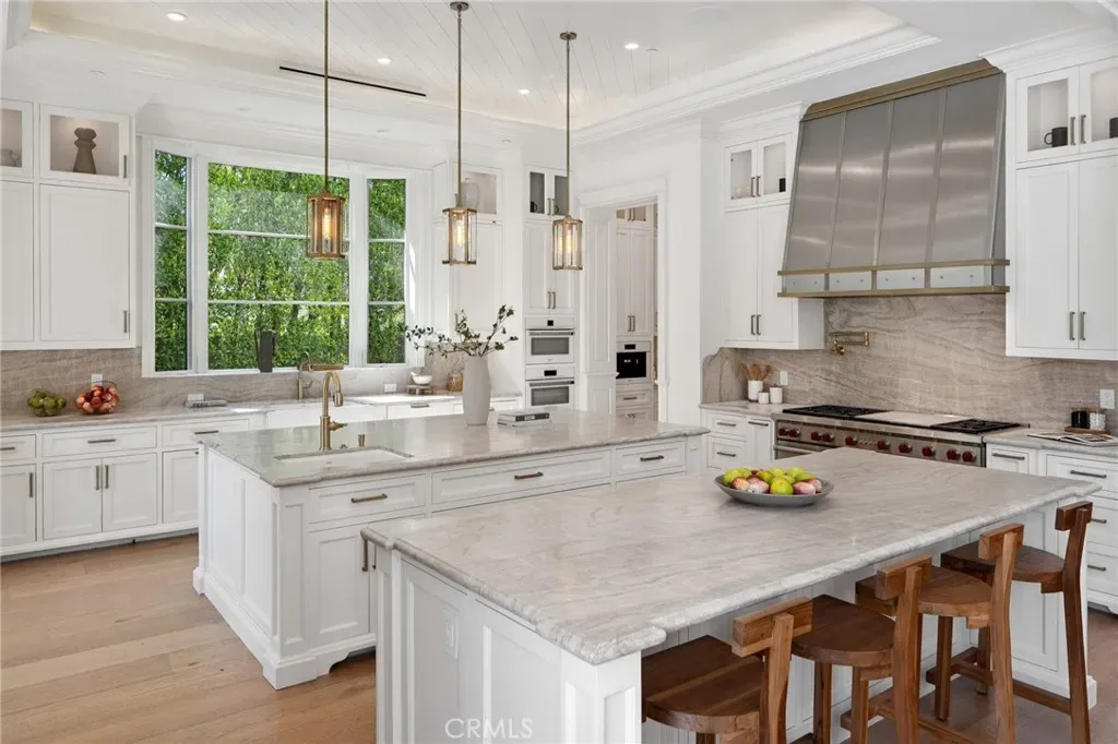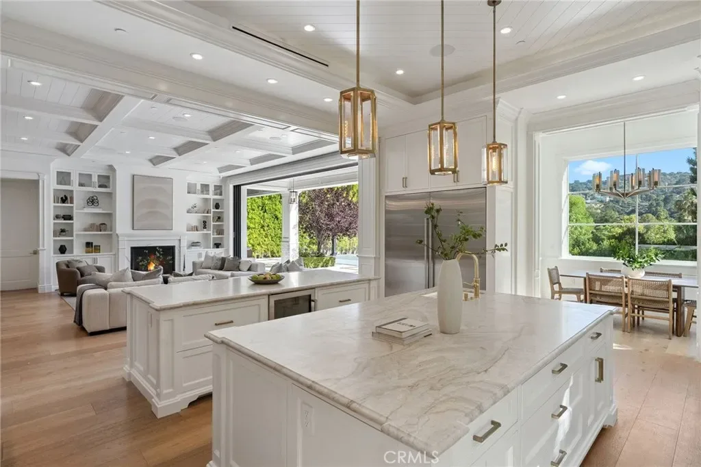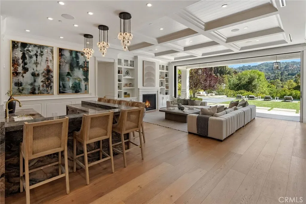Tucked away in the hills of Encino on a peaceful cul-de-sac, this architectural tour de force effortlessly combines timeless elegance with modern luxury and sweeping panoramic views. Behind grand double doors, an impressive foyer welcomes you with soaring ceilings and a dramatic spiral staircase, setting the tone for the home’s sophistication and scale. The expansive open-concept main level is designed for both lavish entertaining and comfortable daily living, featuring a seamless formal living and dining area, a stylish family room with a sleek bar, a temperature-controlled wine cellar and dual pocket glass doors that open at the touch of a button offering a true indoor-outdoor lifestyle. At the heart of the home is a gourmet chef’s kitchen, outfitted with top-of-the-line appliances, double islands, a sunlit breakfast nook and a well-appointed butler’s pantry. Upstairs, you’ll find three ensuite bedrooms and an opulent primary suite complete with dual spa-like bathrooms, a custom walk-in wardrobe and a pocket glass door opening to a large private balcony overlooking the backyard oasis. The lower level is designed for pure indulgence, featuring a glass-enclosed office, billiards lounge, plush home theater, serene massage room with a sauna and an additional patio with direct access to the backyard. Surrounded by mature hedges for added privacy, the resort-style backyard offers a sparkling infinity-edge pool with a large spa and baja shelf, a 600 sq ft cabana, an outdoor kitchen with bar seating and a sports court. Crowning the estate is a showstopping 1,000+ sf rooftop deck with commanding views of the Valley perfect for sunset cocktails or stargazing. Additional features include two main-level ensuite bedrooms, dual laundry rooms, mudroom, elevator, soaring ceilings, Control4 smart home automation, a gated driveway and a three-car garage. Ideally located south of the Boulevard within the coveted Lanai Road School District and just minutes from the Westside, the Valley and world-class amenities.