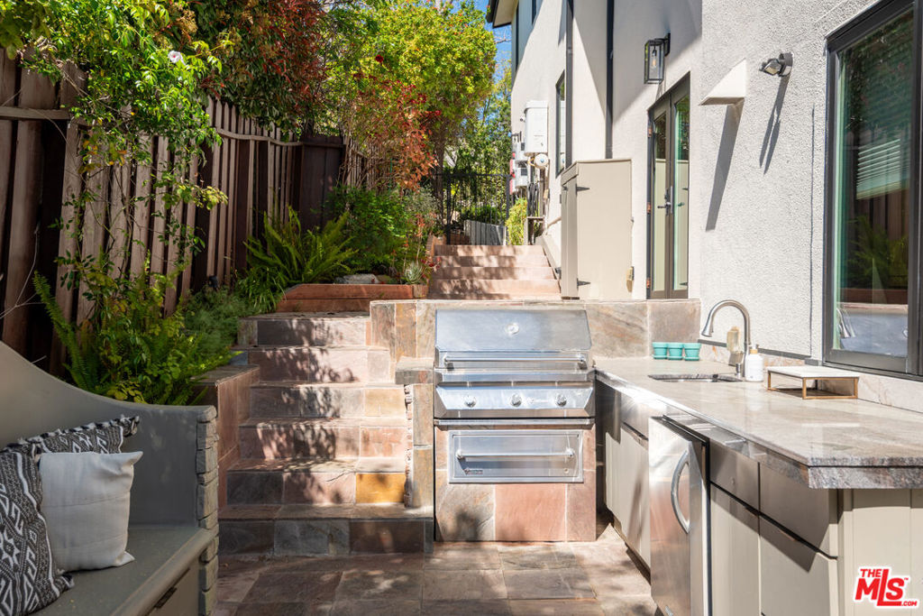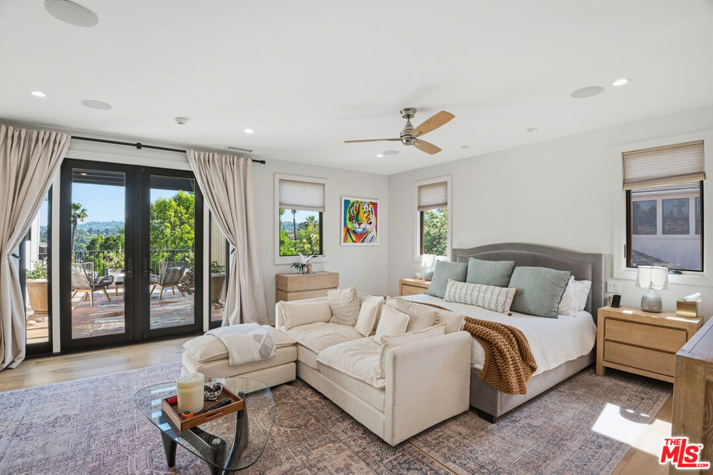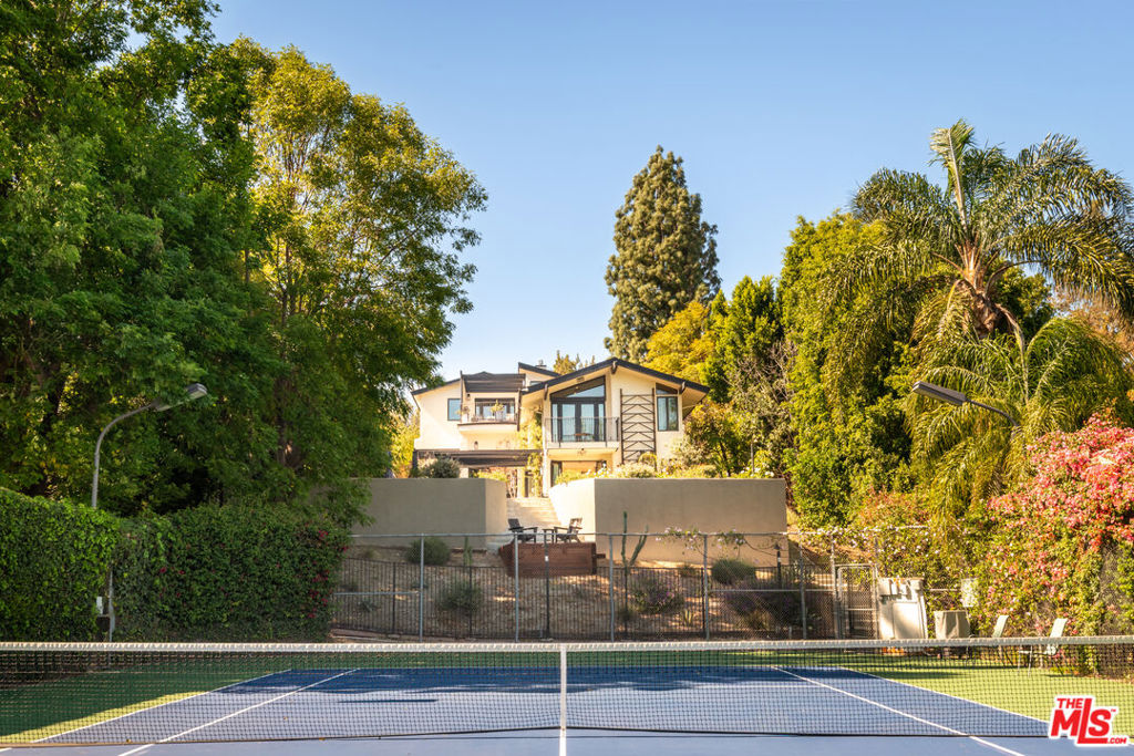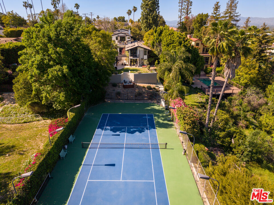 Contemporary, Secure and Inviting, the Perfect Family Compound! This elegant, gated estate on a serene tree-lined street with stunning canyon and city views, located within the highly sought-after Lanai Road Elementary School district. This newly remodeled home features 6 bedrooms and 6 bathrooms on an expansive 32,000 sq ft lot, designed for privacy, comfortable living, entertaining, and multi-generational use. Thoughtfully designed for today’s lifestyle, the flexible layout offers generous spaces for a home office, gym, and spacious bedroom suites each with oversized bathrooms and closets for ultimate comfort. The outdoor amenities are exceptional, including a tennis court, sparkling pool and spa, large grassy play area, and a natural stone patio ideal for outdoor dining. The tranquil grounds include orange and lime orchards all complemented by breathtaking canyon and city views in the heart of Encino, just south of Ventura Blvd.Inside, the home is both refined and welcoming. The living room features a striking marble fireplace, exposed beams, vaulted ceilings, and a loft, flowing seamlessly into the dining area, perfect for entertaining. The updated kitchen is beautifully appointed with high-end finishes, quality fixtures, and top-of-the-line appliances. The spacious primary suite is a true retreat, complete with its own fireplace, a large walk-in closet, and a luxurious en-suite bathroom with an oversized shower and soaking tub. Step out onto the private balcony and enjoy serene, tree-filled canyon views, the perfect setting for a peaceful morning coffee.In addition to the primary suite, the home offers three oversized en-suite bedrooms with charming French door balconies, plus a fourth bedroom with a dual-sink bathroom and direct access to the pool, spa, and sports court, ideal for guests or active family living. Outdoors, the property transforms into an entertainer’s dream. Multiple terraces, trellis-covered patios, a built-in barbecue, and beautifully manicured landscaping create inviting spaces to relax and gather, all centered around a sparkling pool, spa and tennis court viewing deck. For sports enthusiasts, this home truly stands out. Enjoy a newly resurfaced lighted tennis court with ball machine, a sports field for soccer, baseball, and football, as well as a basketball area, bringing a private recreation experience right to your doorstep.The tennis court and park area are part of a small friendly 9-home HOA. Notably, this property owner pays no HOA fees and receives additional benefits because the court is on their property and is shared with the other families (details available). This is more than a home, it’s a private retreat designed for comfort, security, and everyday enjoyment.