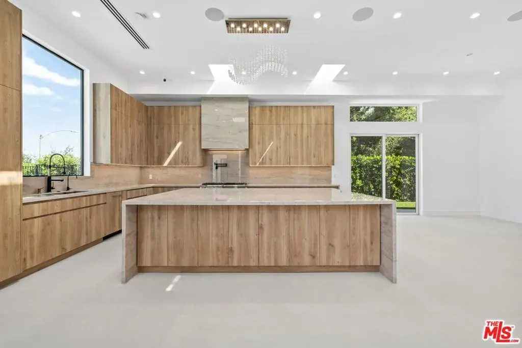 Perched in the coveted Encino Hills, this stunning single-level residence offers modern design, seamless indoor-outdoor living, and an unbeatable location with easy access to both the Westside and the Valley.Step inside to soaring ceilings, expansive glass doors, and an open layout that bathes the interiors in natural light. The living room features a striking contemporary fireplace wall, flowing effortlessly into the chef’s kitchen adorned with custom wood cabinetry, stone countertops, and top-of-the-line appliances. Skylights and oversized windows create an airy, inviting atmosphere throughout.The primary suite is a retreat of its own, complete with a spa-like bathroom boasting dual vanities, a soaking tub, and an oversized walk-in shower framed in luxe stone. Additional bedrooms and bathrooms offer comfort and flexibility for family, guests, or work-from-home needs.Outdoors, a sparkling pool and spa set the stage for resort-style relaxation. A sleek covered bar and lounge area make entertaining effortless, while the generous patio spaces encourage al fresco living year-round.With its modern finishes, elegant single-level design, and exceptional location, this Encino Hills lease is a rare opportunity to enjoy California living at its finest.
