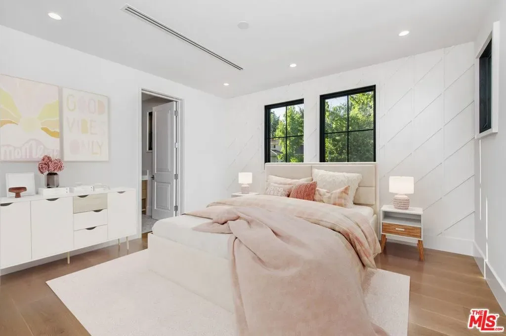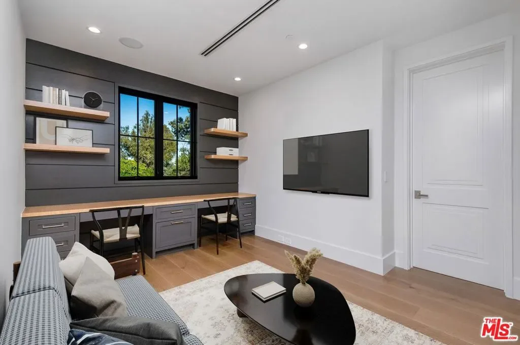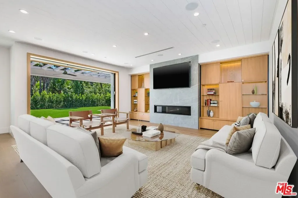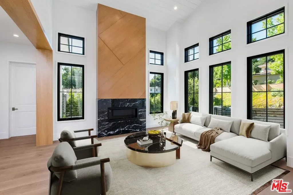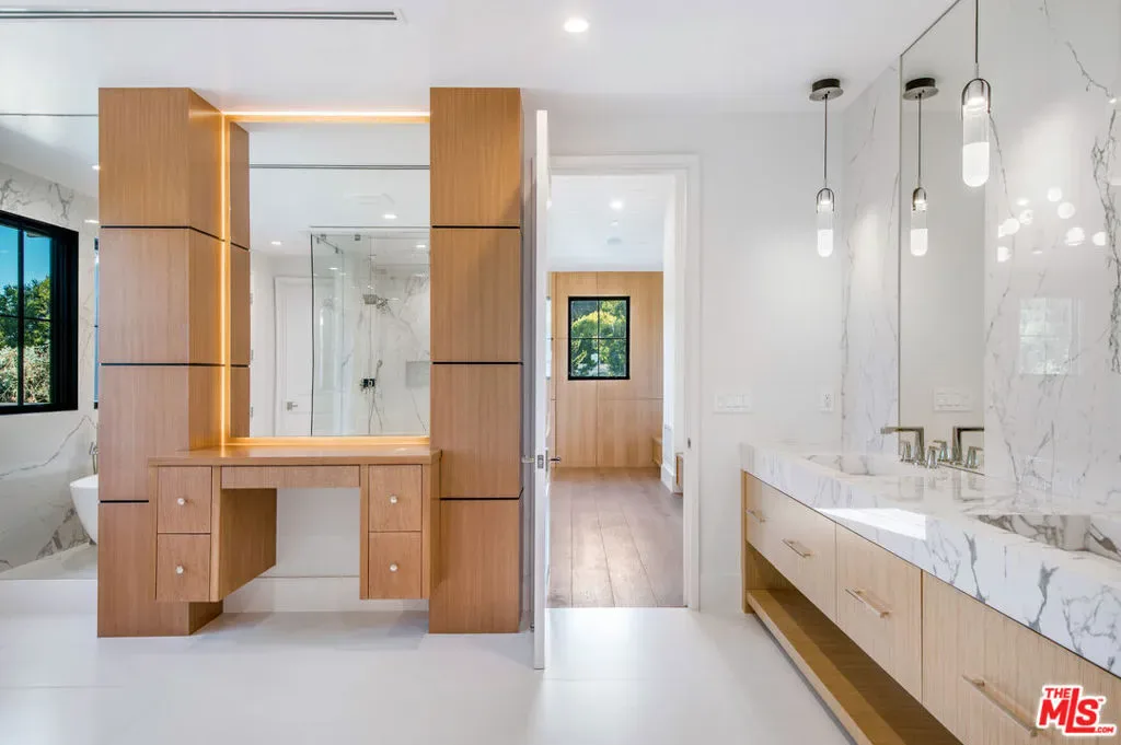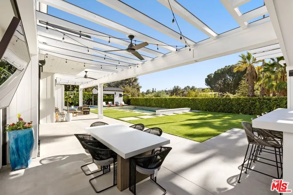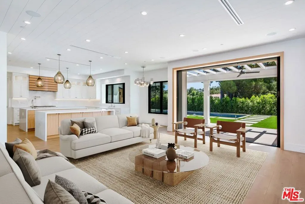 Recently built, stylish modern farmhouse south of the Boulevard with a guest house and a rare, expansive flat yard. This 7-bedroom, 8-bathroom residence is finished with exquisite details, including rich wood accents, soaring ceilings, and expansive walls of glass that open to patios, pool, lawn, and the oversized flat yard. A chic, detached one-bedroom, one-bath guest house opens directly to the main entertaining area. An approximately 500-square-foot, beautifully built recording studio with soundproofing offers flexibility and could easily be converted into a home theater. The kitchen, family room, and great room feature two large islands, designer cabinetry, Wolf appliances, and a generous gathering space centered around a fireplace. The primary suite opens to a private balcony overlooking the yard and lush greenery and includes a fireplace, a large walk-in closet, and a spa-like bath. Four ensuite bedrooms are located upstairs, with two additional bedrooms on the main level, along with an office that could function as an additional bedroom or a secluded library or den. The grand living room features double-height ceilings, and the formal dining room is well suited for hosting on a large scale. A rare opportunity to own a thoughtfully designed, substantial property in one of Encino’s premier locations.