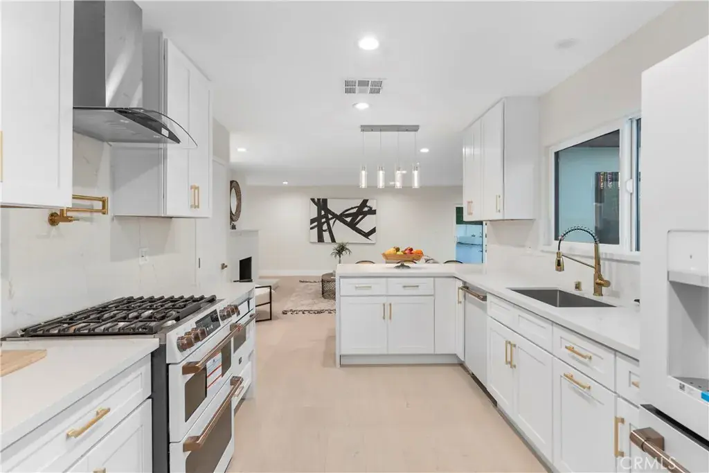 Welcome to 16915 Dormie Pl — a stunning single-level gem in premier Encino boasting 5 spacious bedrooms and 3 beautifully appointed baths. Completely transformed for today’s modern lifestyle, this home marries effortless indoor/outdoor living with high-end craftsmanship and designer finishes. Step inside to an open, light-filled floor plan featuring brand-new engineered hardwood flooring that flows throughout the home. The remodeled chef’s kitchen is a showstopper — equipped with top-tier Café appliances, sleek new countertops, and bespoke cabinetry that elevate every meal. Every corner of the home has been thoughtfully updated, including all new electrical wiring, all-new windows and doors, and designer lighting that creates both warmth and sophistication. Retreat to the luxurious primary suite or any of the four additional bedrooms, each offering comfort and style. The three fully renovated bathrooms feature modern fixtures and finishes with a spa-like feel. Outside, the entertainer’s backyard is a true California paradise — newly landscaped for low-maintenance enjoyment and complete with a refreshed pool with a new pump ready for endless relaxation and gatherings under the sun or stars. Additional upgrades include a brand-new roof and premium finishes throughout — this is modern luxury living at its best. Located in one of Encino’s most desirable pockets, this home is the perfect blend of style, comfort, and convenience.