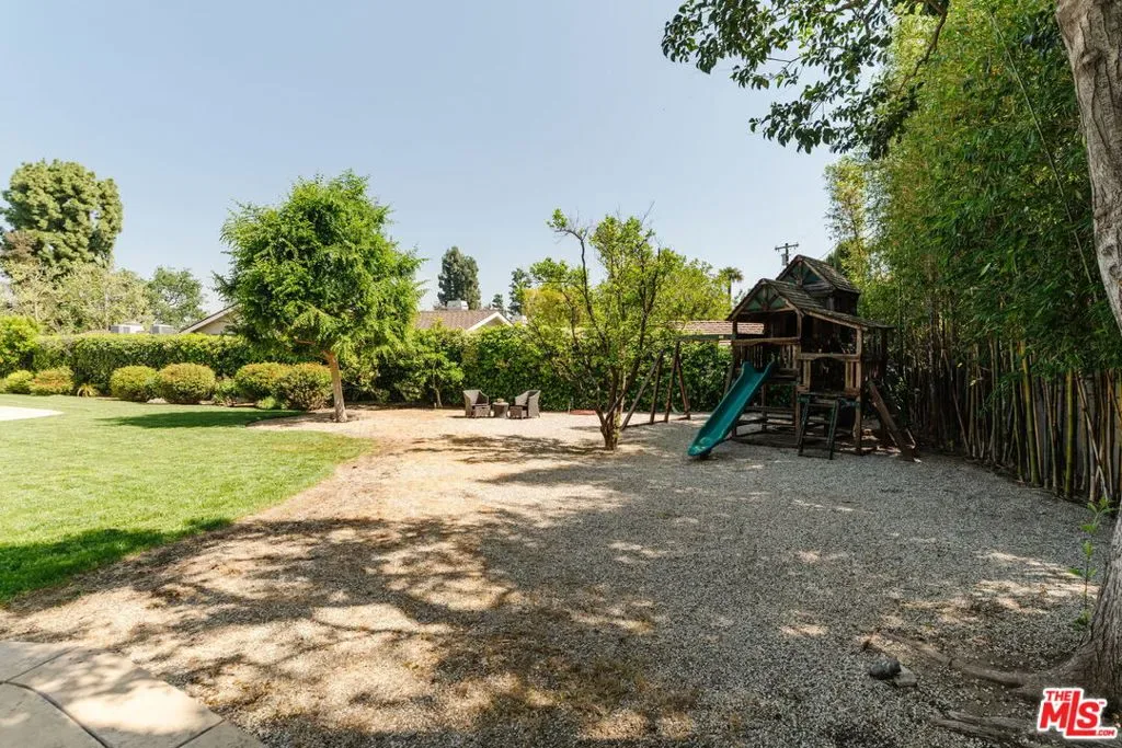 Nestled in the highly sought-after Amestoy Estates neighborhood, this expansive estate offers six bedrooms, eight bathrooms, and sits on an impressive, flat 18,000+ square foot lotembodying a graceful blend of scale, comfort, and refined living. Introduced by a grand circular driveway, the home reveals itself with quiet elegance and was completely reimagined and expanded in 2006, where a beautifully composed layout creates a natural harmony between elevated entertaining and everyday ease.Well designed, each bedroom is appointed as a spacious ensuite, offering a sense of retreat and comfort throughout. A private media room with its own bathroom and a dedicated gym further enhance the home, creating spaces that invite both relaxation and recreation.From the moment you enter, the home unfolds with an effortless, natural flow. The living room, highlighted by dramatic two-story ceilings, transitions seamlessly into the formal dining area, then onward to the kitchen and family room, creating a series of light-filled, open spaces. Sunlight pours in, while French doors open to the backyard, blurring the line between indoors and out and allowing each space to feel effortlessly connected.At the heart of the home, the chef’s kitchen serves as a natural gathering placeopen, inviting, and thoughtfully appointed with a large island, stainless steel appliances, and a walk-in pantry. A charming breakfast sitting area completes the space, making it ideal for both casual mornings and larger gatherings.Warmth is woven throughout, with fireplaces anchoring both the dining room and the primary suite, adding a sense of intimacy and quiet sophistication.Upstairs, four generously sized ensuite bedrooms offer comfort and calm, each thoughtfully designed with ample closet space and beautifully finished baths.The primary suite unfolds as a true sanctuaryexpansive yet serene, featuring a sitting area with a fireplace, dual walk-in closets, and a private balcony overlooking the lush grounds. The spa-inspired bath evokes a sense of escape, with refined finishes and a tranquil, restorative atmosphere.Outside, the grounds feel both expansive and secluded. Set on a flat lot and framed by mature bamboo and lush hedging, the backyard offers exceptional privacy. A sparkling pool anchors the space, surrounded by a sprawling lawn, a dedicated playground, and a collection of fruit trees. A separate structure with a three-quarter bathcurrently used as a gymoffers incredible flexibility and could easily serve as a pool house, office, or guest quarters, adding to the versatility of the outdoor setting.Offering a rare combination of space, comfort, and versatility, this home presents an exceptional opportunity to experience the best of Amestoy Estates living.